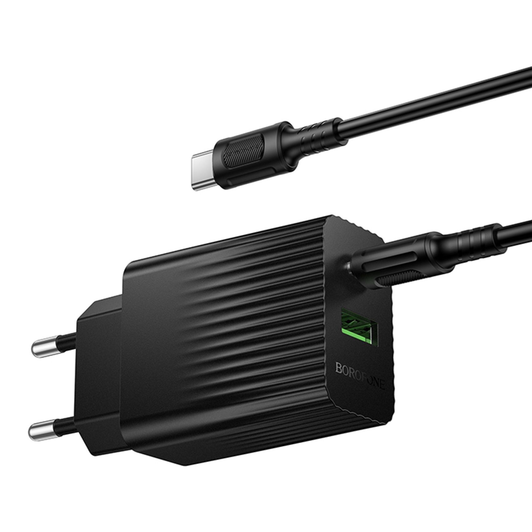 Мережевий Зарядний пристрій Borofone BAS72A 1USB QC3.0 18W+USB to Type-C Білий
