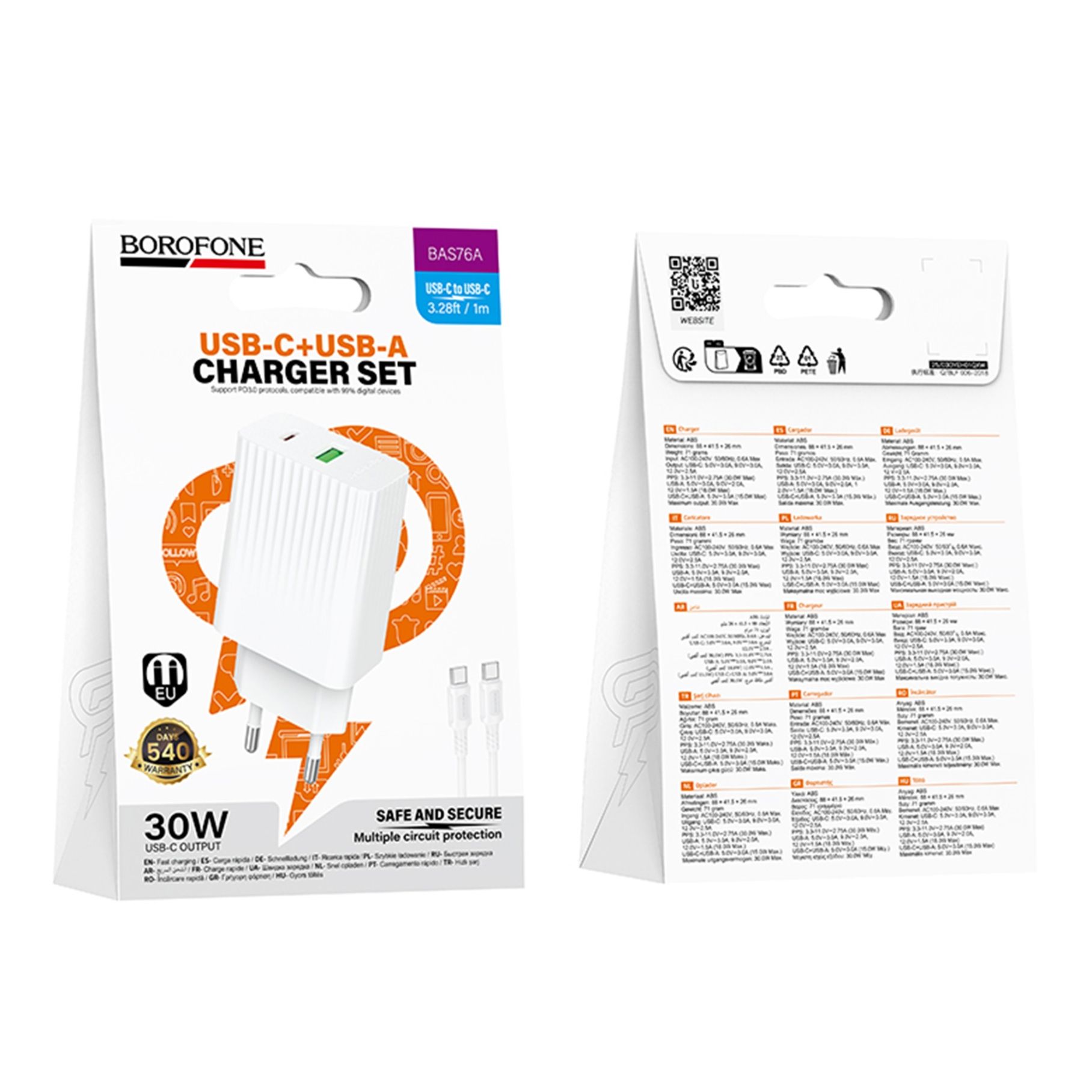 ΠΠ΅ΡΠ΅ΠΆΠ΅Π²ΠΈΠΉ Π·Π°ΡΡΠ΄Π½ΠΈΠΉ ΠΏΡΠΈΡΡΡΡΠΉ Borofone BAS76A Π· ΠΊΠ°Π±Π΅Π»Π΅ΠΌ Type-C β Type-C β ΡΠ΅ ΠΏΠΎΡΡΠΆΠ½Π΅ ΡΠ° ΡΠ½ΡΠ²Π΅ΡΡΠ°Π»ΡΠ½Π΅ ΡΡΡΠ΅Π½Π½Ρ Π΄Π»Ρ ΡΠ²ΠΈΠ΄ΠΊΠΎΠ³ΠΎ Π·Π°ΡΡΠ΄ΠΆΠ°Π½Π½Ρ ΡΡΡΠ°ΡΠ½ΠΈΡ Π³Π°Π΄ΠΆΠ΅ΡΡΠ². ΠΠΎΠ½ΠΎ ΠΏΡΠ΄ΡΡΠΈΠΌΡΡ ΠΏΠ΅ΡΠ΅Π΄ΠΎΠ²Ρ ΡΠ΅Ρ Π½ΠΎΠ»ΠΎΠ³ΡΡ Power Delivery ΡΠ° Quick Charge, Π·Π°Π±Π΅Π·ΠΏΠ΅ΡΡΡΡΠΈ Π²ΠΈΡΠΎΠΊΡ ΡΠ²ΠΈΠ΄ΠΊΡΡΡΡ Π·Π°ΡΡΠ΄ΠΆΠ°Π½Π½Ρ, Π° ΠΊΠΎΠΌΠΏΠ»Π΅ΠΊΡΠ½ΠΈΠΉ ΠΊΠ°Π±Π΅Π»Ρ Π΄ΠΎΠ·Π²ΠΎΠ»ΡΡ ΠΎΠ΄Π½ΠΎΡΠ°ΡΠ½ΠΎ Π²ΠΈΠΊΠΎΡΠΈΡΡΠΎΠ²ΡΠ²Π°ΡΠΈ Π°Π΄Π°ΠΏΡΠ΅Ρ Π±Π΅Π· Π΄ΠΎΠ΄Π°ΡΠΊΠΎΠ²ΠΈΡ Π°ΠΊΡΠ΅ΡΡΠ°ΡΡΠ².