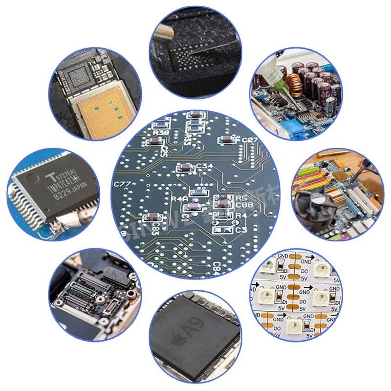 - Підходить для різних видів паяння, включаючи монтаж та ремонт SMD, BGA та PGA компонентів.