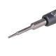 - Наконечник Torx T2 забезпечує щільне прилягання до гвинтів, запобігаючи зриву граней і пошкодженню кріплення при роботі з дрібними елементами.