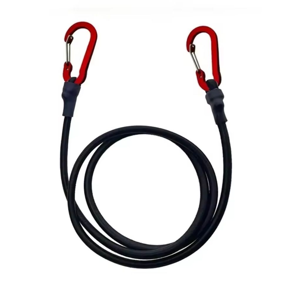 Цей міцний та універсальний ремінь Банджі призначений для надійної фіксації різних вантажів в автомобілі, на велосипеді, у похідних умовах та за активного відпочинку. Еластичний трос виконаний на основі латексу із захисним обплетенням, що забезпечує високу розтяжність, стійкість до зношування та тривалий термін служби.