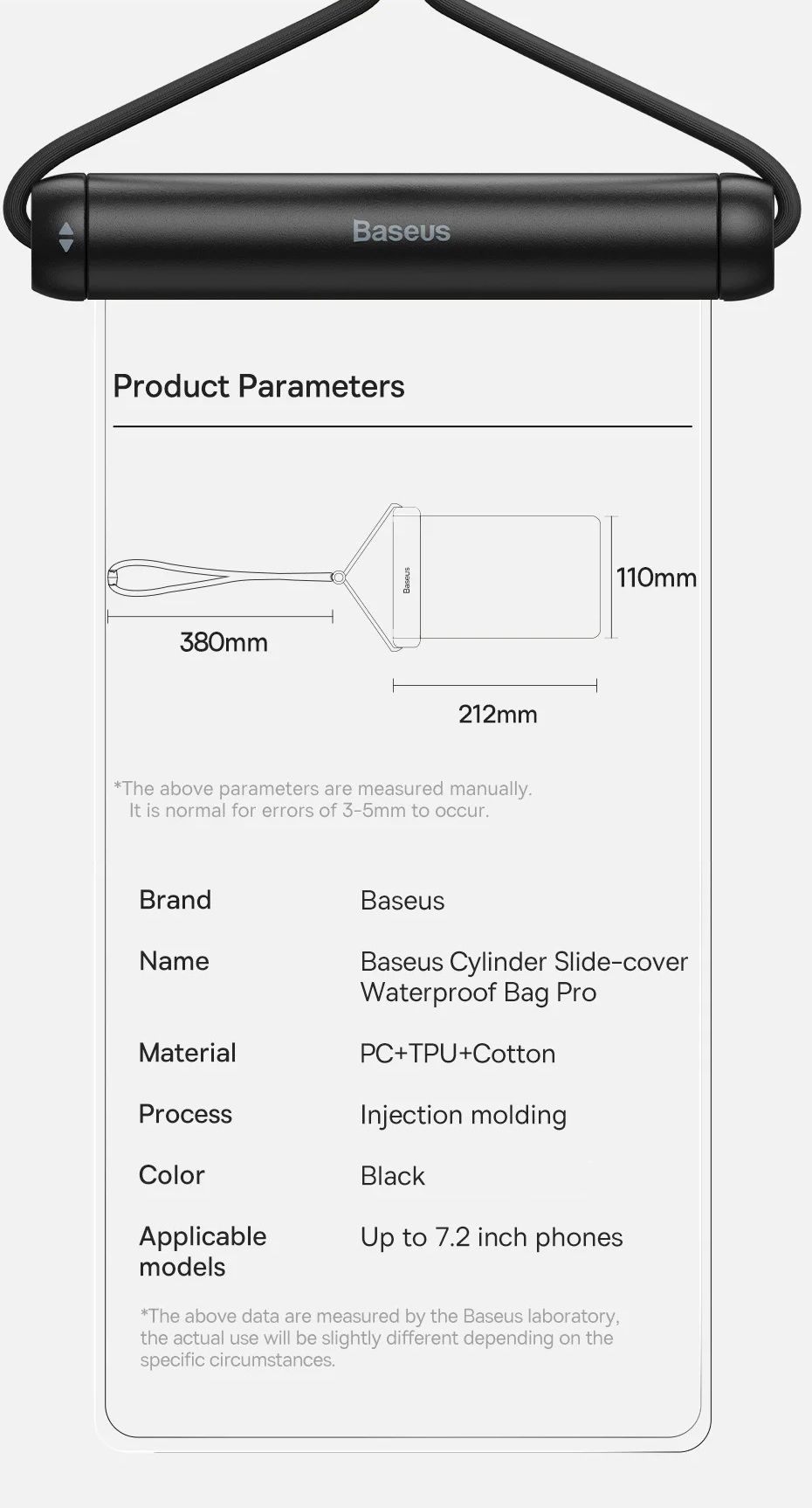 Водонепроникний чохол Baseus Cylinder Slide-cover Waterproof Bag Pro Case max 7.2" (FMYT000001) IPX8 TPU+ABS Black