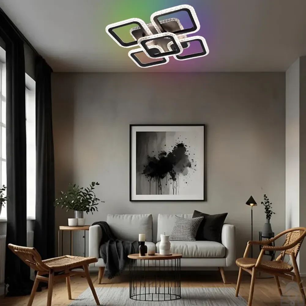 Бажаєте додати яскравий акцент в інтер'єр і керувати світлом за сценарієм? Ця стельова смарт-люстра поєднує кольорове підсвічування, яскравість і контроль з телефону. Ідеально підійде для квартир у Києві чи Дніпрі.