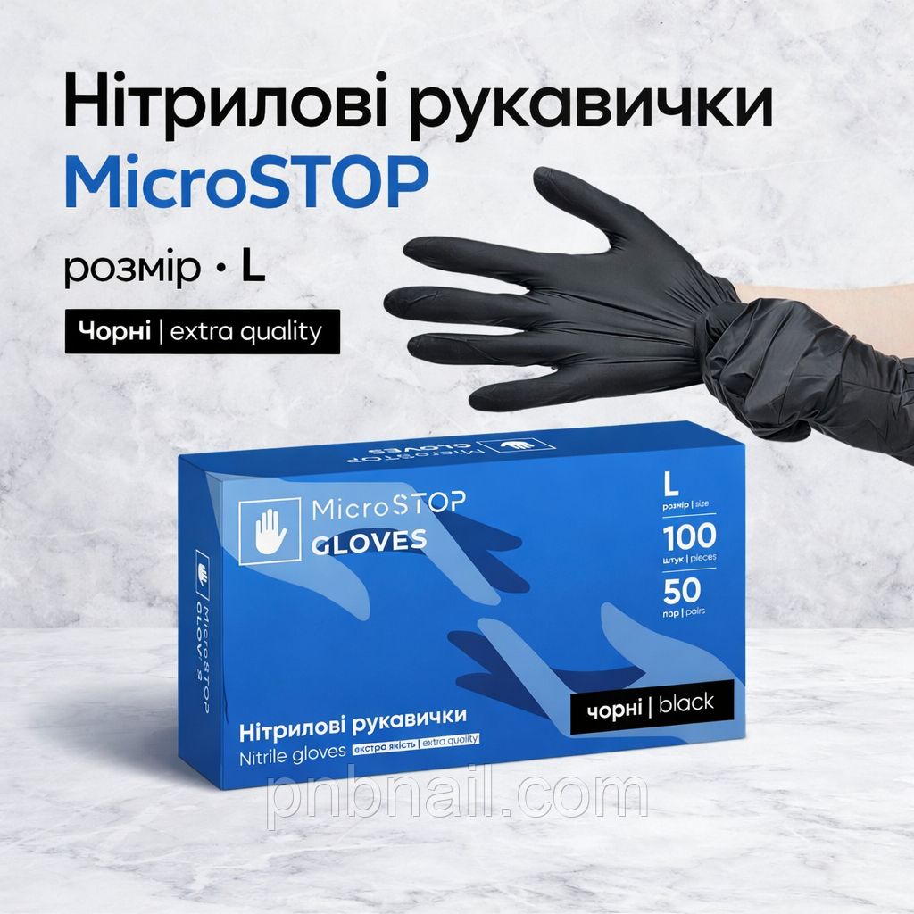 Рукавички нітрилові MicroSTOP неопудрені міцні, чорні / розмір L