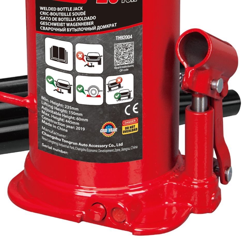 Домкрат гідравлічний пляшковий з можливістю роботи в горизонтальному положенні 20т 235–445 мм TORIN TH92004C
