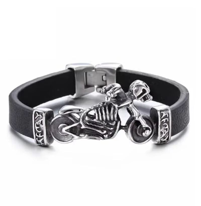 Браслет з байкерським мотоцилком і скелетом черепом чорний каучуковий гумовий