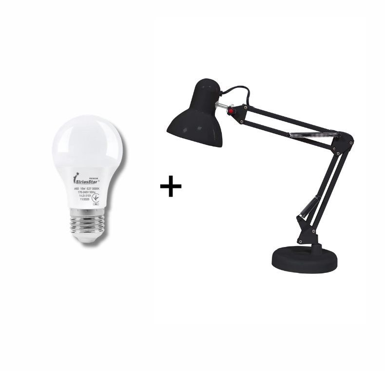 Настільна лампа VALESO SM-800A, метал + пластик, чорний, E27, 60W