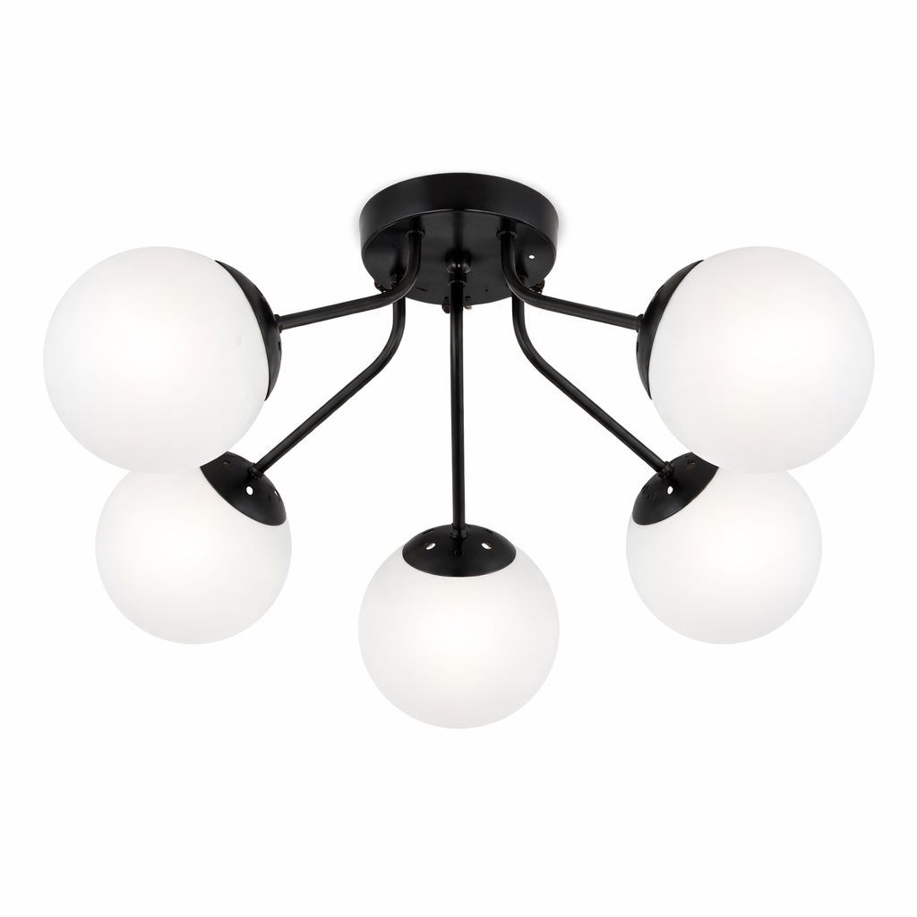 Стельова люстра VALESO 5182-5, 5 плафонів, метал + скло, чорний, E27, 60W