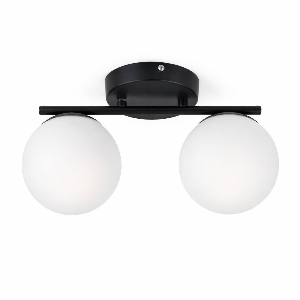 Стельова люстра VALESO DN117-2, 2 плафони, метал + скло, чорний, E27, 60W