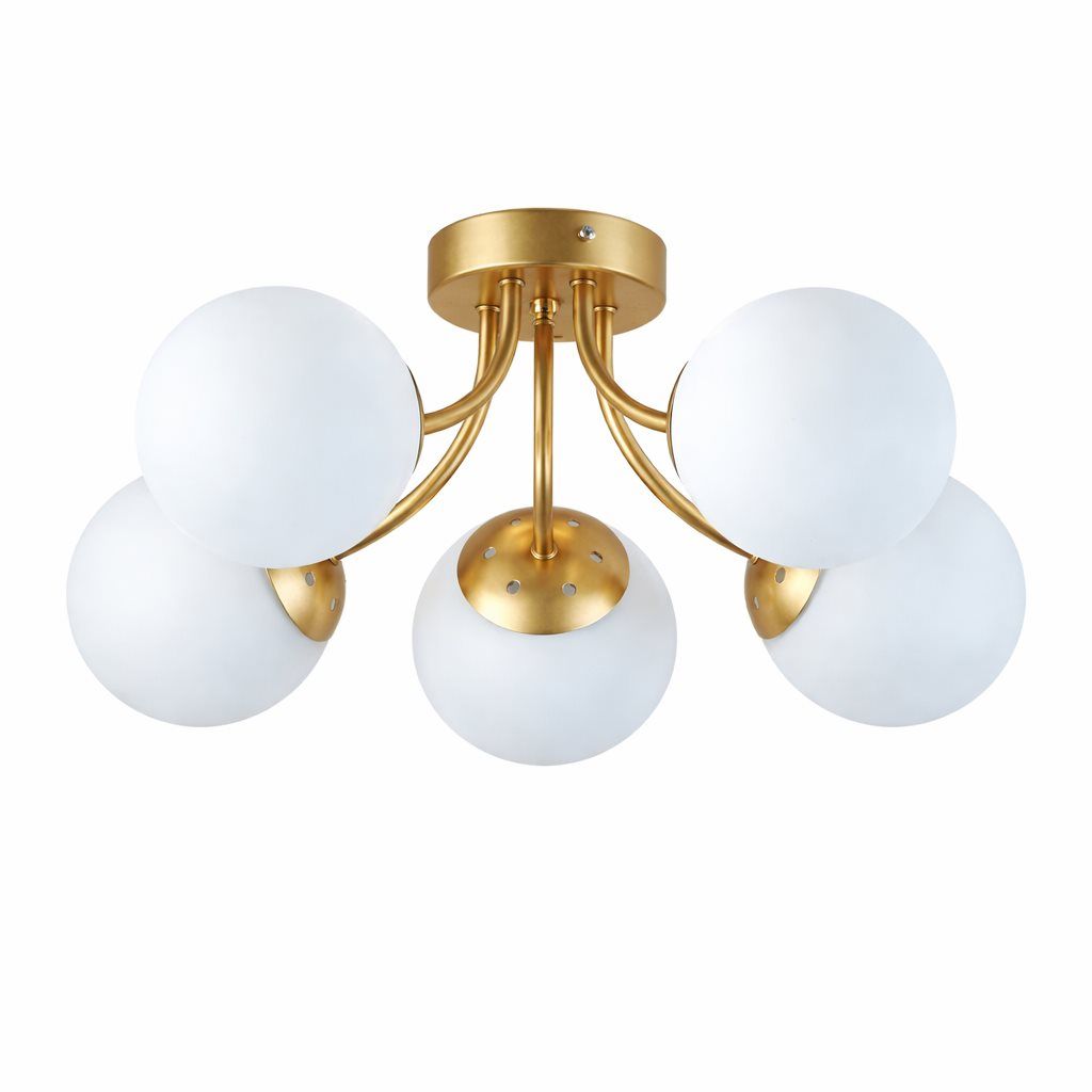 Стельова люстра VALESO DN19-5, 5 плафонів, метал + скло, золото, E27, 60W