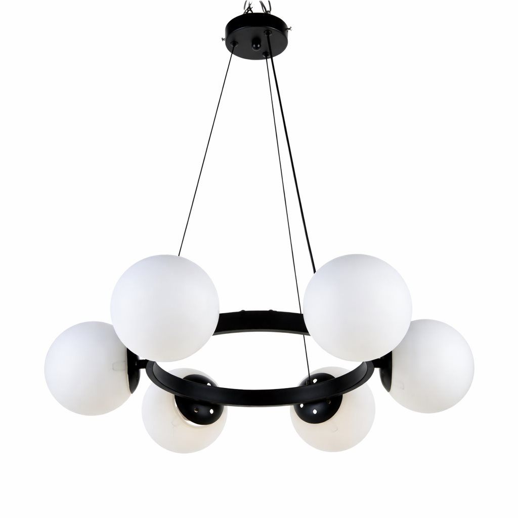 Стельова люстра VALESO DN31-6, 6 плафонів, метал + скло, чорний, E27, 60W