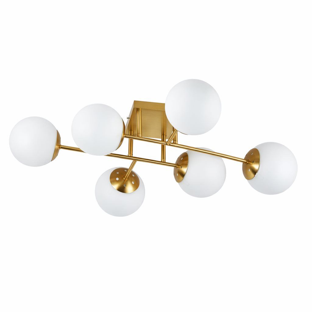 Стельова люстра VALESO DN05-6, 6 плафонів, метал + скло, мідь, E27, 60W