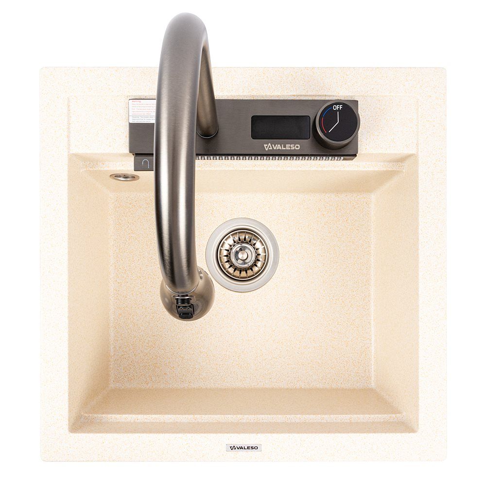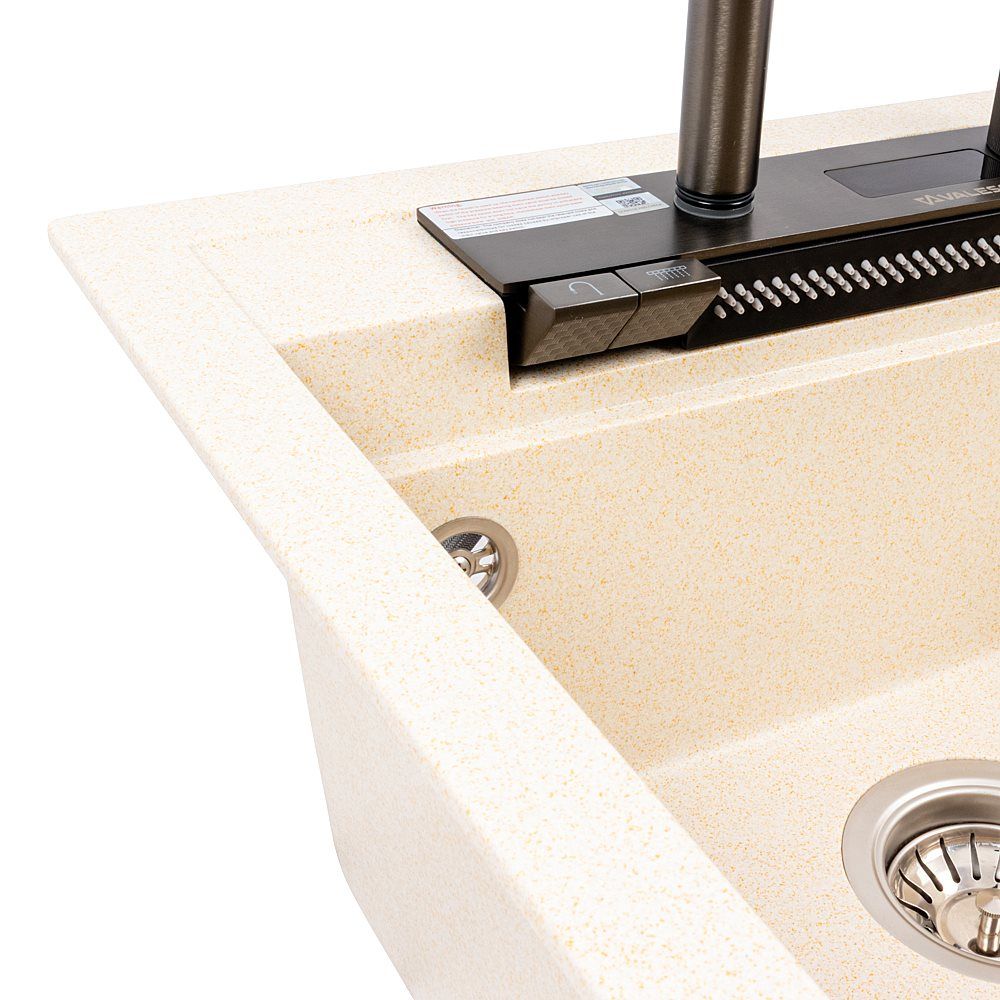 Мийки VALESO виготовляються з високоякісного штучного каменю, що гарантує їхню високу стійкість до подряпин, ударів, термічних впливів та агресивних хімічних речовин. Матеріал не вбирає запахи та легко чиститься, що забезпечує довговічність і збереження естетичного вигляду протягом багатьох років використання.