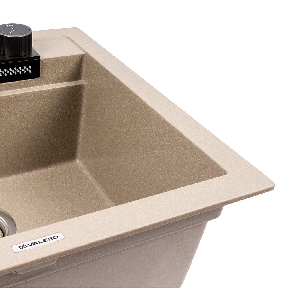 Мийки VALESO виготовляються з високоякісного штучного каменю, що гарантує їхню високу стійкість до подряпин, ударів, термічних впливів та агресивних хімічних речовин. Матеріал не вбирає запахи та легко чиститься, що забезпечує довговічність і збереження естетичного вигляду протягом багатьох років використання.