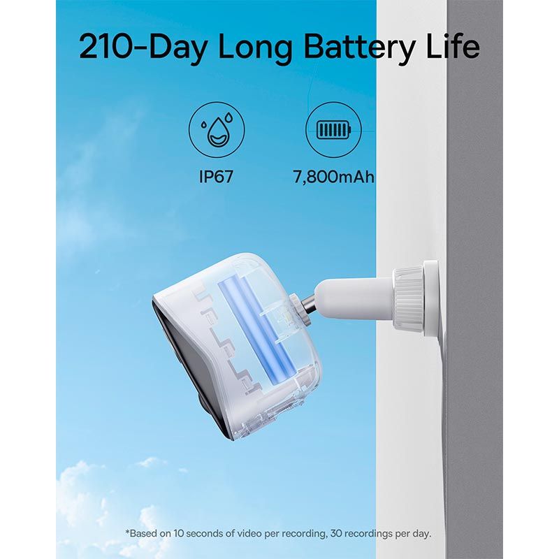 - Кожна камера оснащена акумулятором із ємністю 7800 мА·год, що забезпечує тривалу роботу без частої підзарядки та спрощує встановлення.