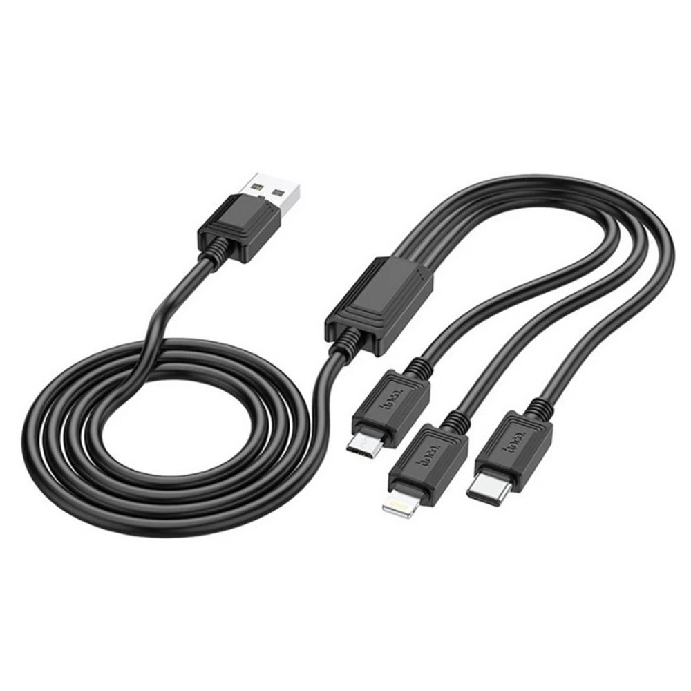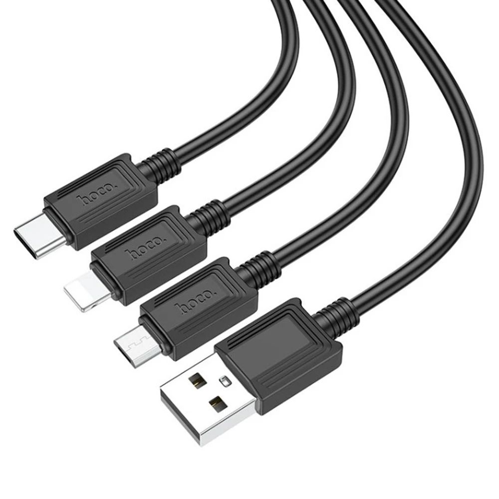 USB Кабель HOCO X74 3in1 USB - Lightning + MicroUSB + Type-C чорний