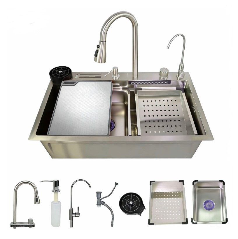 Система «Водоспад»: Це справжній релакс під час готування. М’який потік води ідеально підходить для делікатного миття овочів, фруктів та зелені, перетворюючи рутину на естетичний процес.