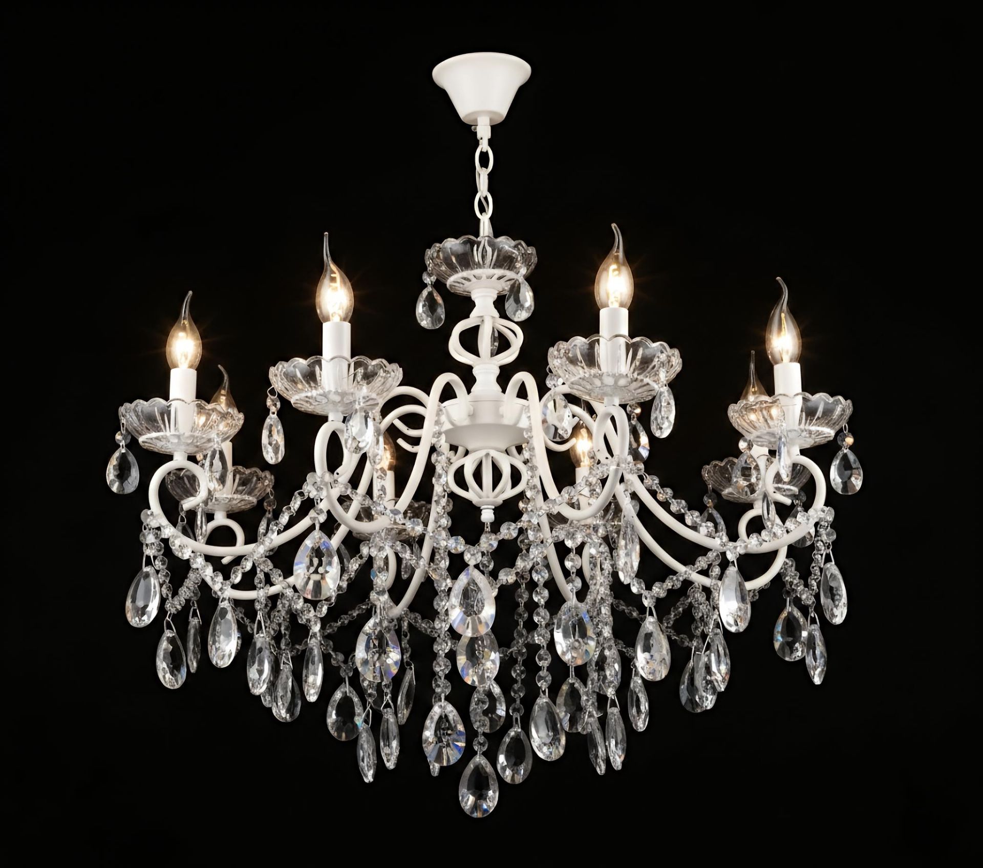 Ця елегантна люстра від бренду VALESO перетворить ваш інтер'єр, додаючи йому нотки розкоші та вишуканості. Виготовлена з поєднання високоякісної сталі та сяючого кришталю, вона стане центральним елементом вашої вітальні чи зали. Білий колір каркаса гармонійно поєднується з кришталевими елементами, створюючи чарівну гру світла, яка наповнює приміщення теплом та затишком.