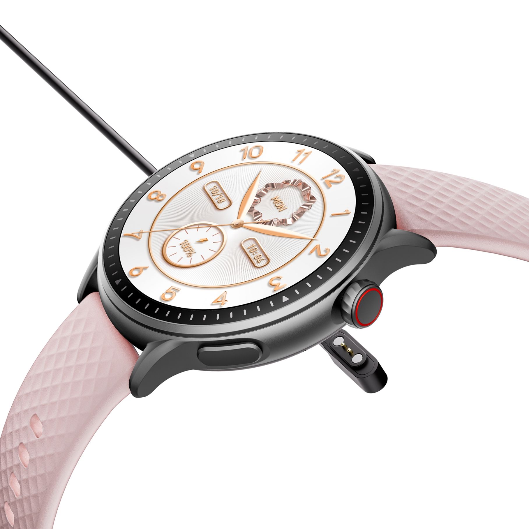 - Яскравий та чіткий екран з високою роздільною здатністю забезпечує відмінну читаність інформації за будь-яких умов освітлення. Кругла форма дисплея підкреслює класичний стиль пристрою.