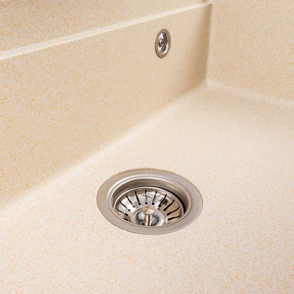 Мийка виготовлена з високоякісного гранітного композиту, що забезпечує стійкість до подряпин, ударів, високих температур і впливу побутової хімії. Вона не вбирає запахи та легко очищується, що робить її практичною у повсякденному використанні.