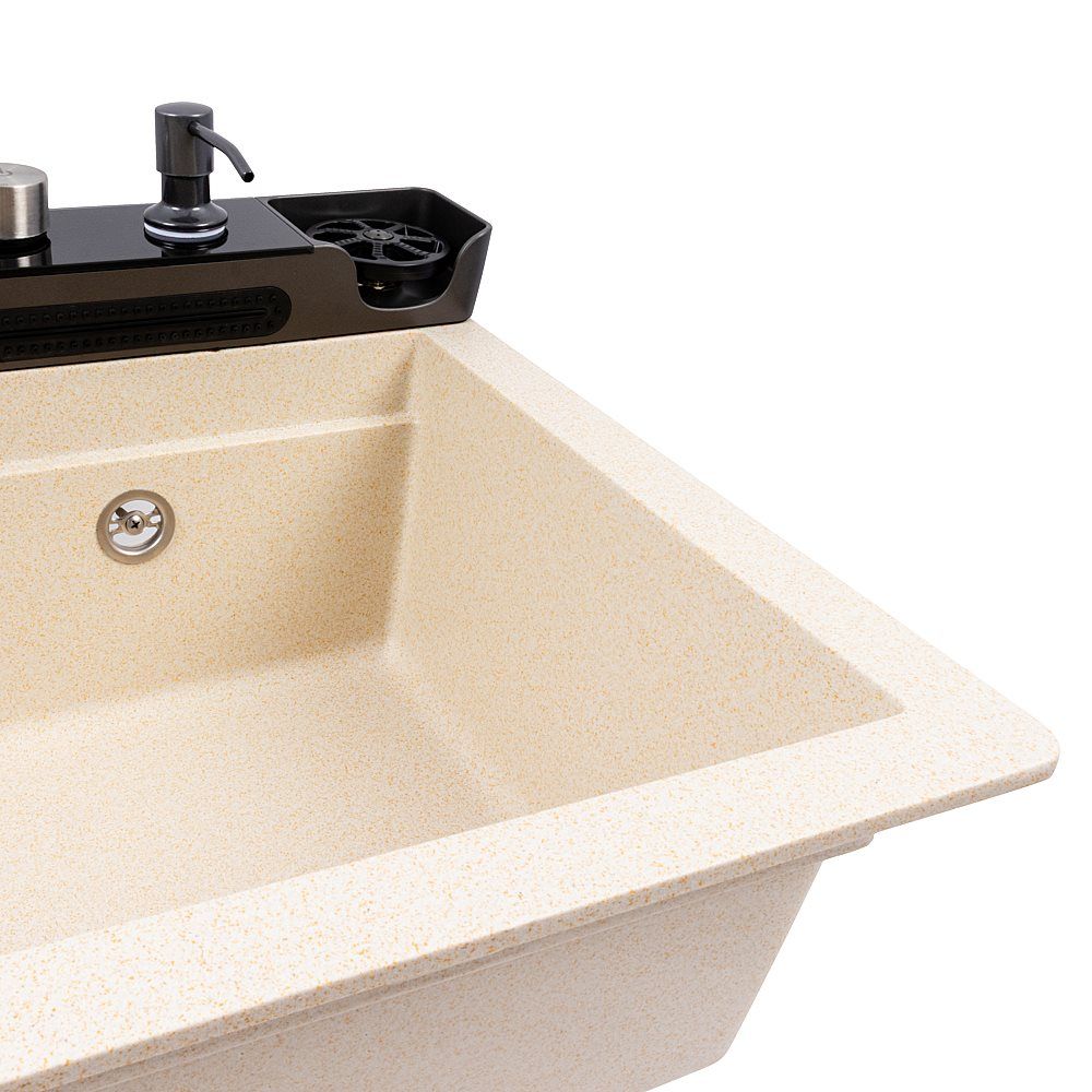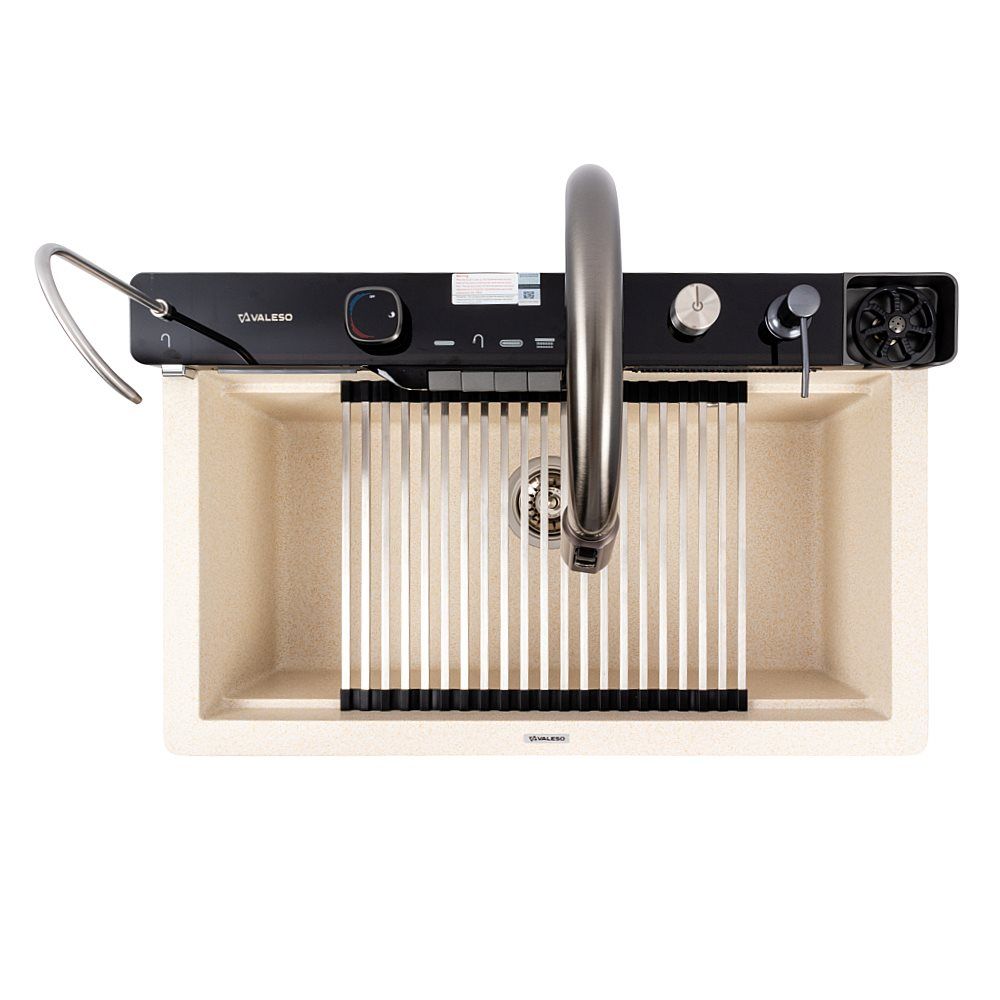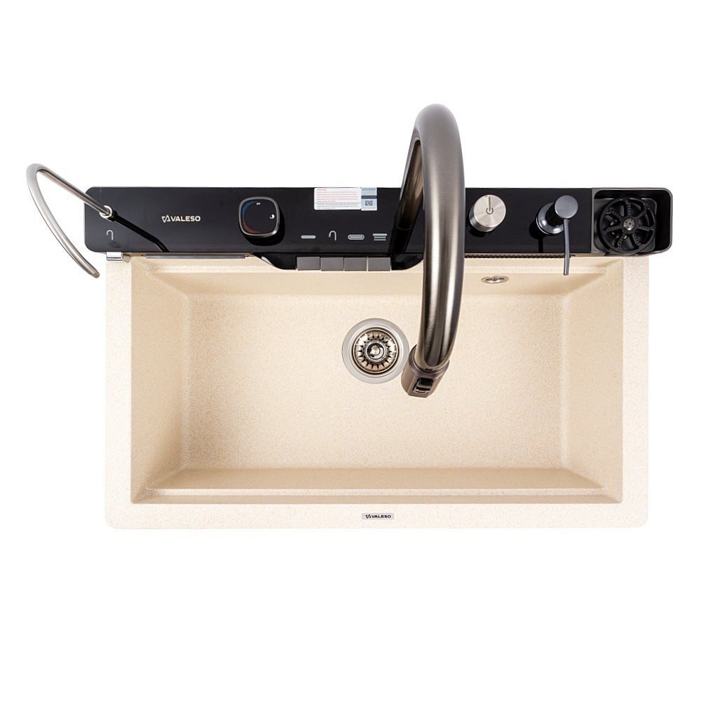 Гранітна мийка VALESO 7546 EVANORA — це сучасне та багатофункціональне рішення для кухні, яке поєднує стильний дизайн і максимальний комфорт у використанні. Матове покриття кольору пісок надає виробу теплого та природного вигляду, гармонійно поєднуючись із різними інтер’єрами.
