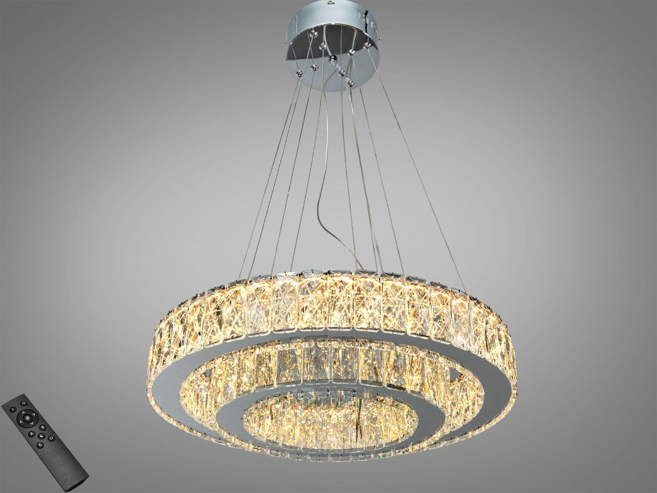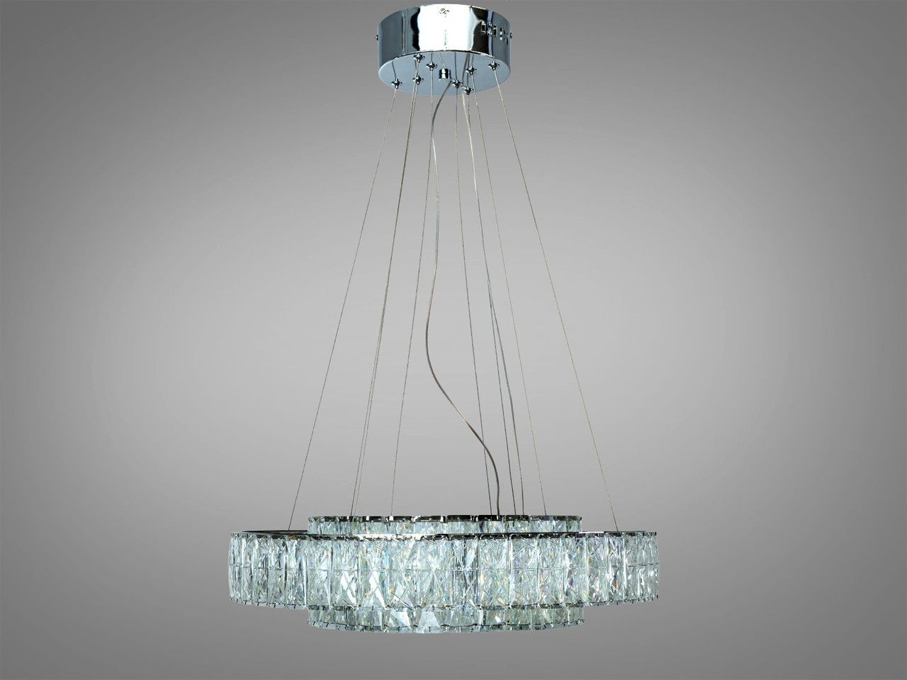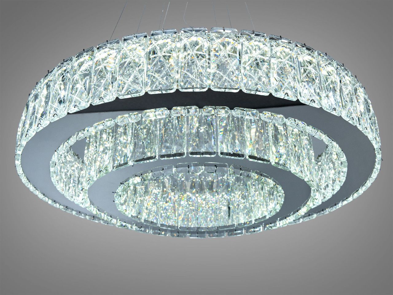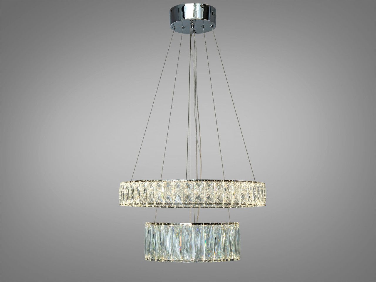 Світлодіодна кришталева люстра LED 82W, два кільця, колір хром