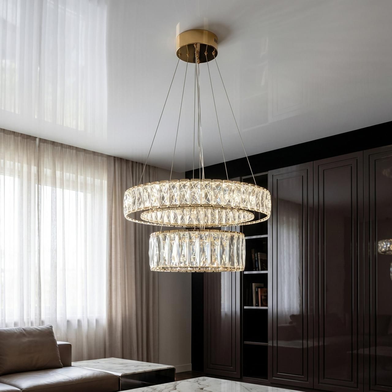 Люстра двома кришталевими кільцями Diasha 82W до 18 м² колір Золото 575/500+320G