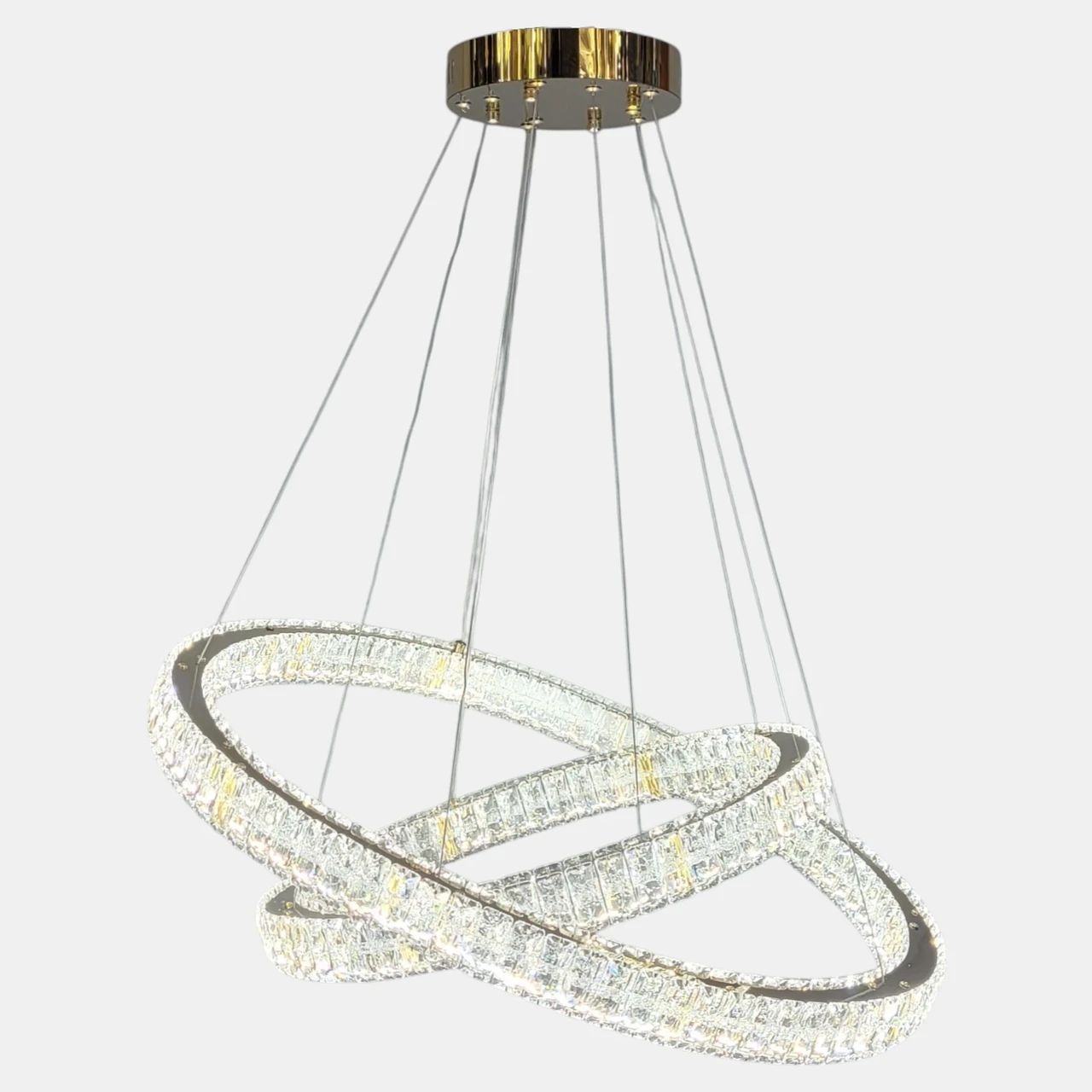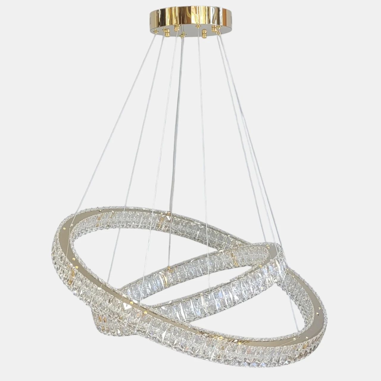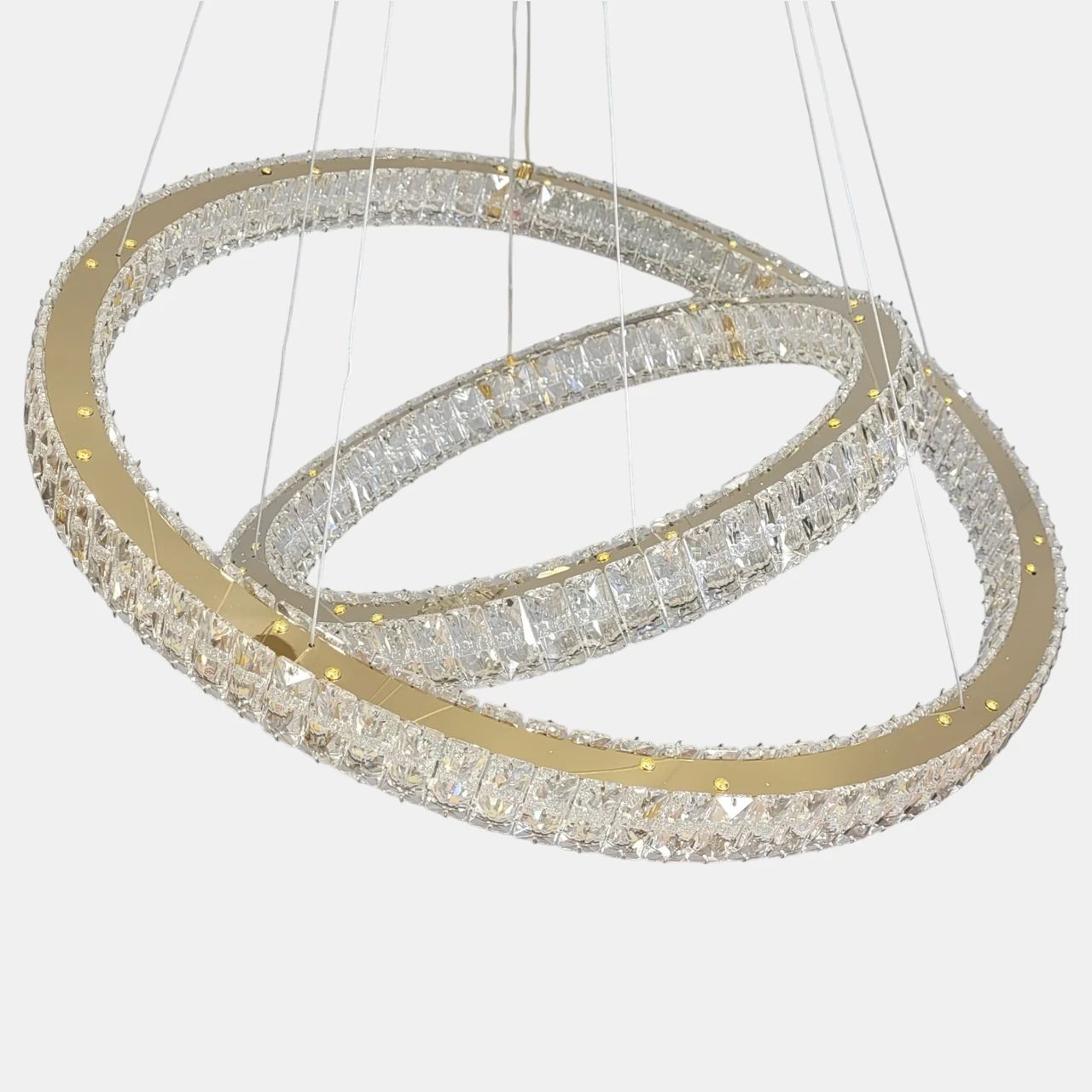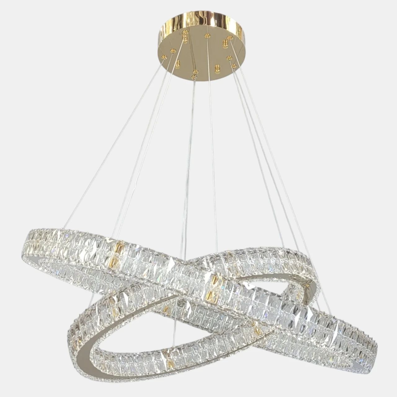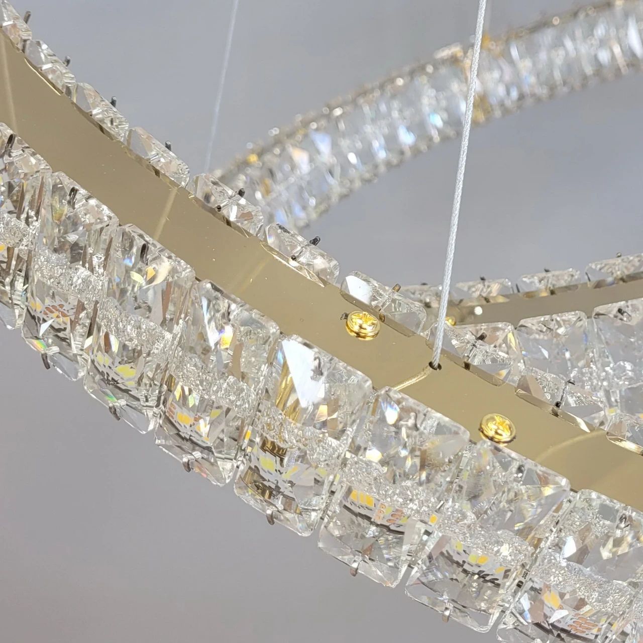 Світлодіодна кришталева люстра LED 191W, два кільця, колір золото