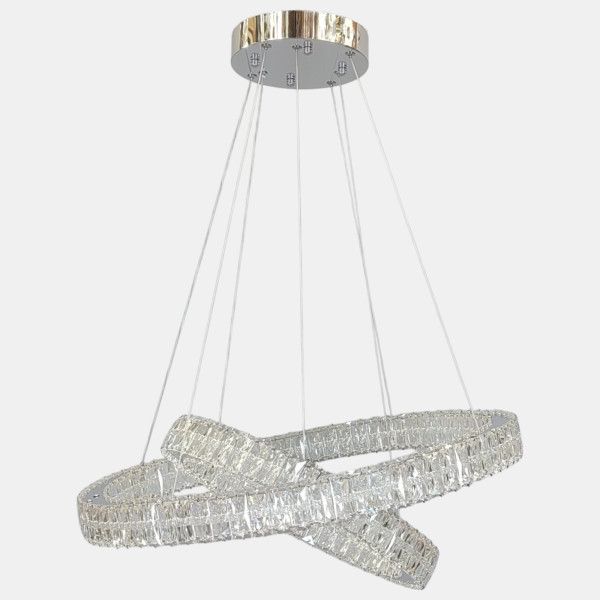 Світлодіодна кришталева люстра LED 157W, два кільця, колір хром