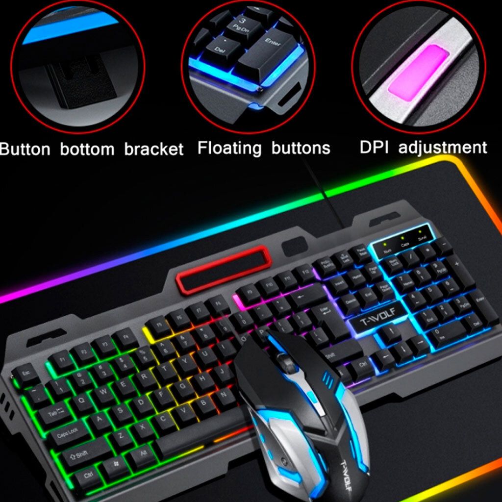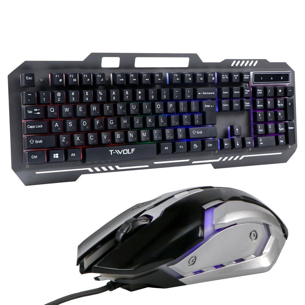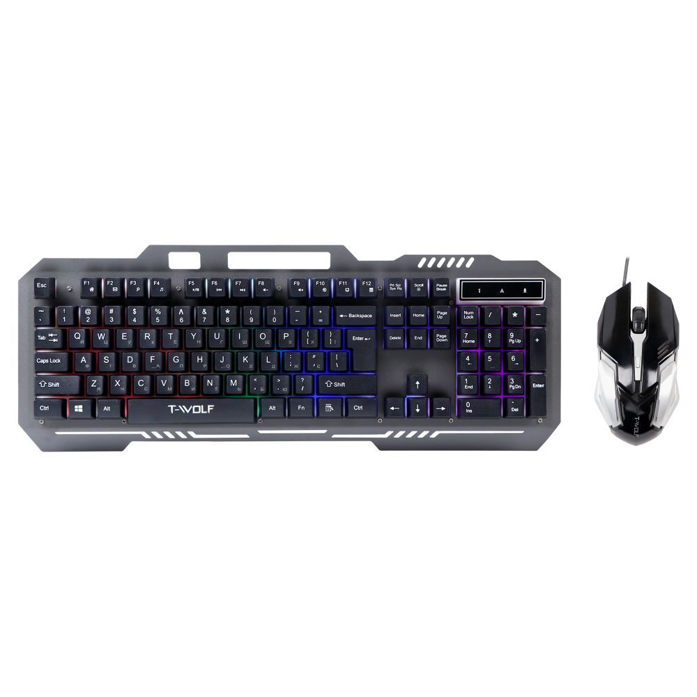 TWolf TF600 — це стильний та функціональний комплект комп'ютерної периферії, розроблений для геймерів та користувачів, яким важливі комфорт, надійність та ефектний зовнішній вигляд. Клавіатура та миша виконані в єдиному технологічному дизайні з яскравим RGB LED-підсвічуванням та продуманою ергономікою, що робить комплект відмінним вибором як для ігор, так і для повсякденної роботи за комп'ютером.