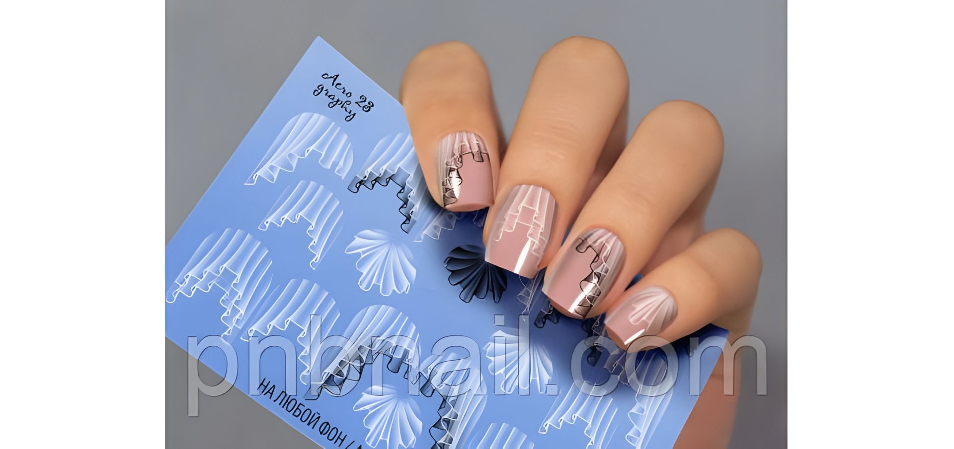 Слайдер дизайн для нігтів — це різноманітні малюнки на дуже тонкій плівці, якісний друк. Тому нігтям вони надають вишуканого витонченого вигляду... Наклейки, призначені для нанесення як на всю поверхню нігтя так і частково...