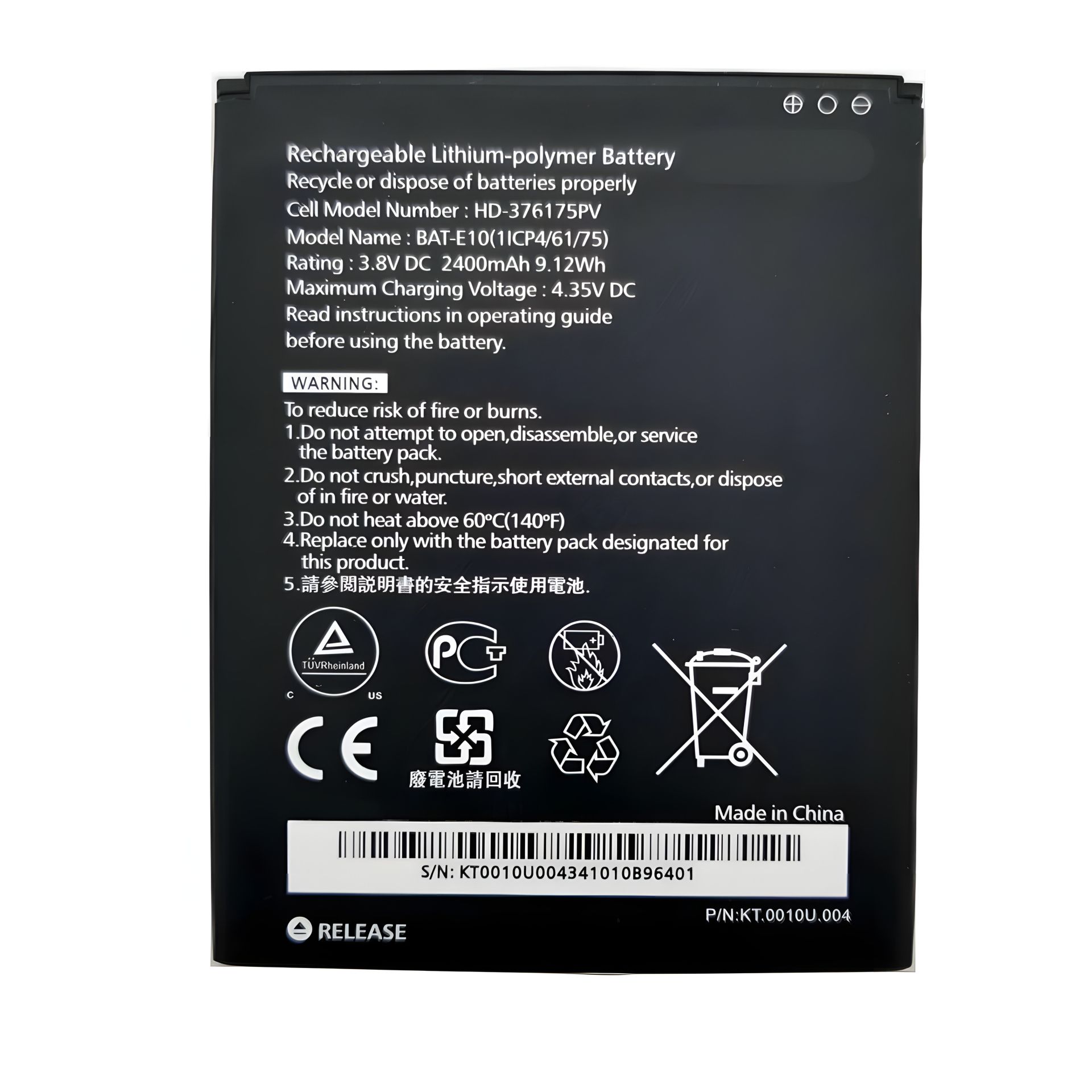 Маркировка АКБ:BAT-E10
