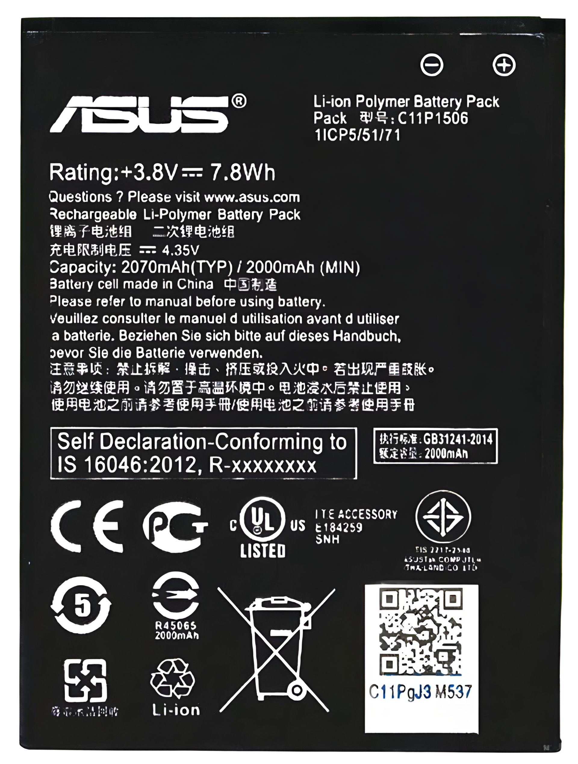 Для моделей Asus:ZC500TG,ZenFone Go Маркировка АКБ:C11P1506