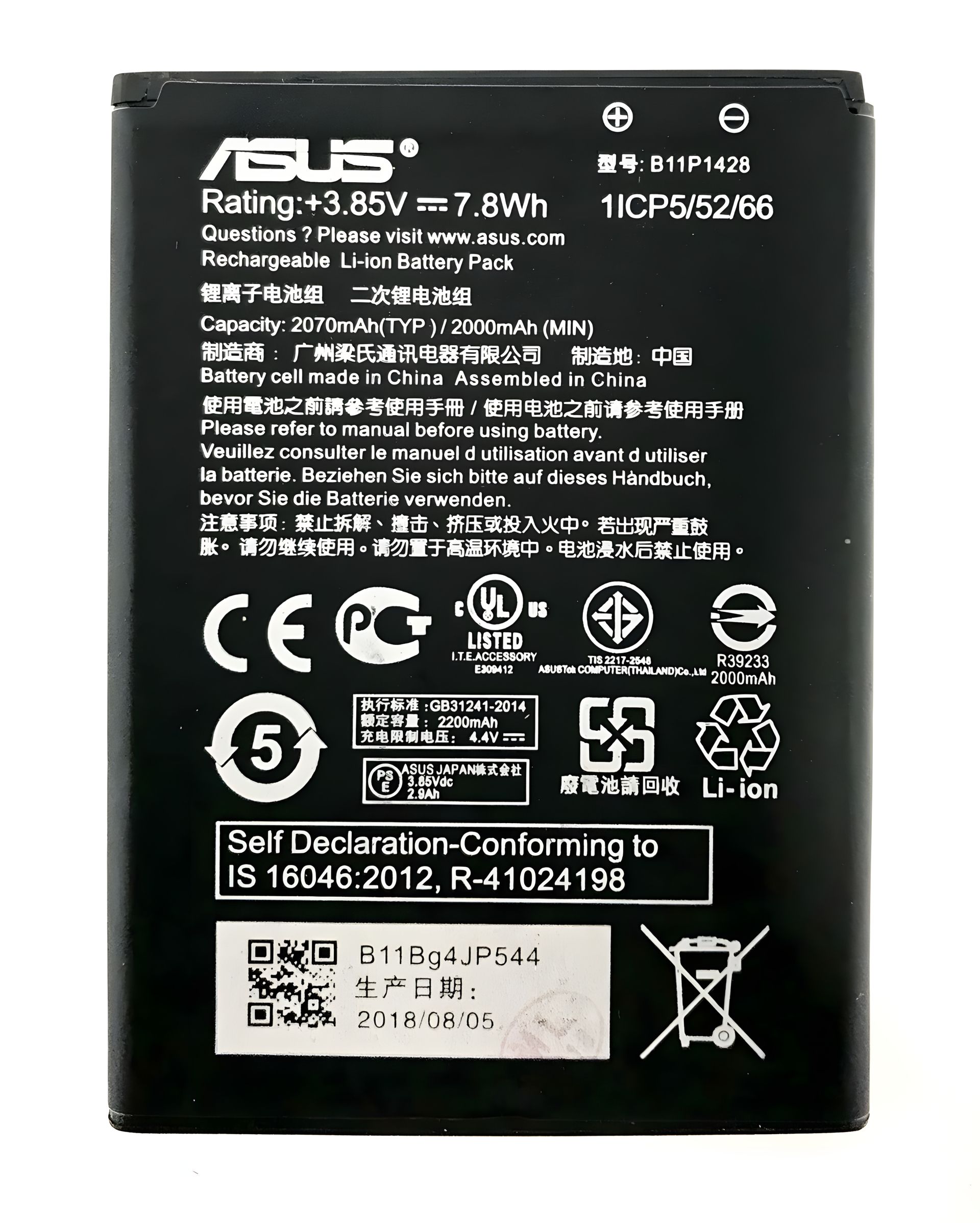 Для моделей Asus:Zenfone Go Маркировка АКБ:B11P1428