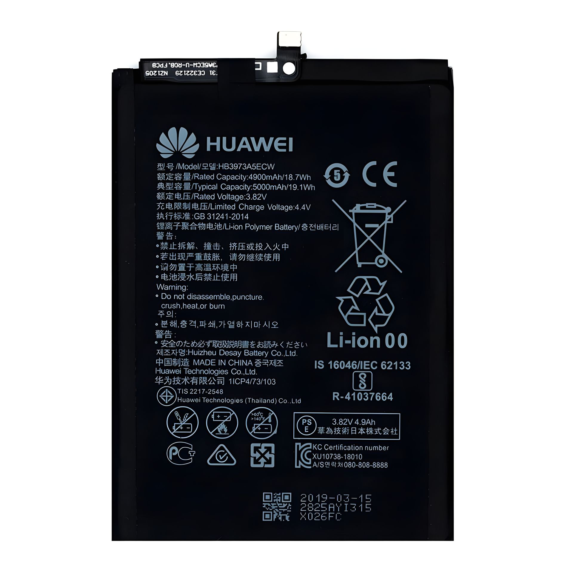 Для моделей Huawei (Honor):Honor 8X Max,ARE-AL00,Mate 20X,EVR-L29,Honor Note 10 Маркировка АКБ:HB4073A5ECW,HB3973A5ECW