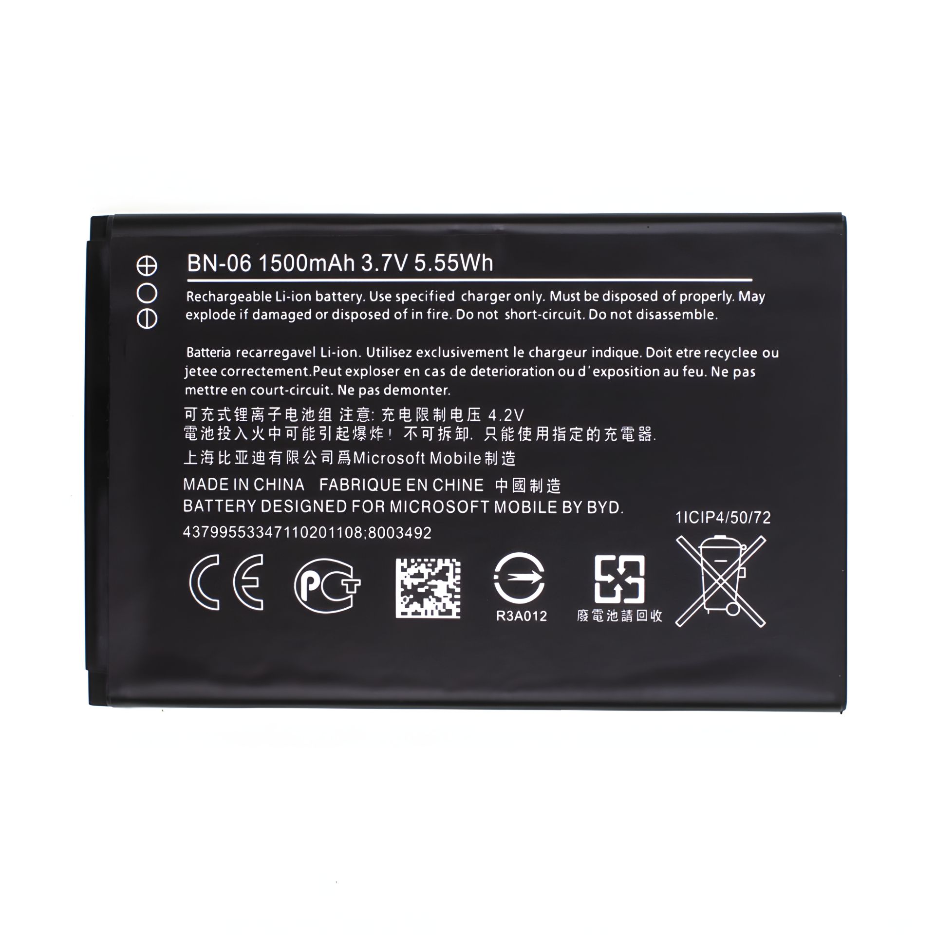 Для моделей Nokia (Microsoft): Lumia 430, RM-1099 Маркування АКБ: BN-06
