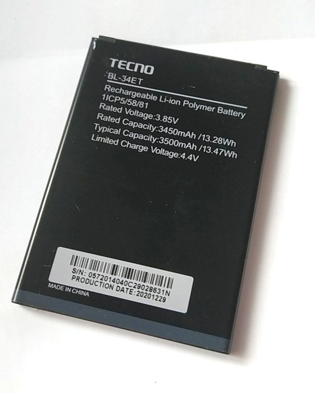 На Аккумулятор Tecno BL-34ET / Tecno POP 3 (BB2) / Li-Pol 3500 mAh, 13.47 Wh, 3.85 V [Original] 12 мес. гарантии обеспечена гарантия. Уточняйте срок гарантии в характеристиках товара или у менеджера при оформлении заказа. Обязательно сохраняйте упаковку товара целой в течение всего срока гарантии, это позволит, в случае необходимости, максимально быстро выполнить гарантийные условия.