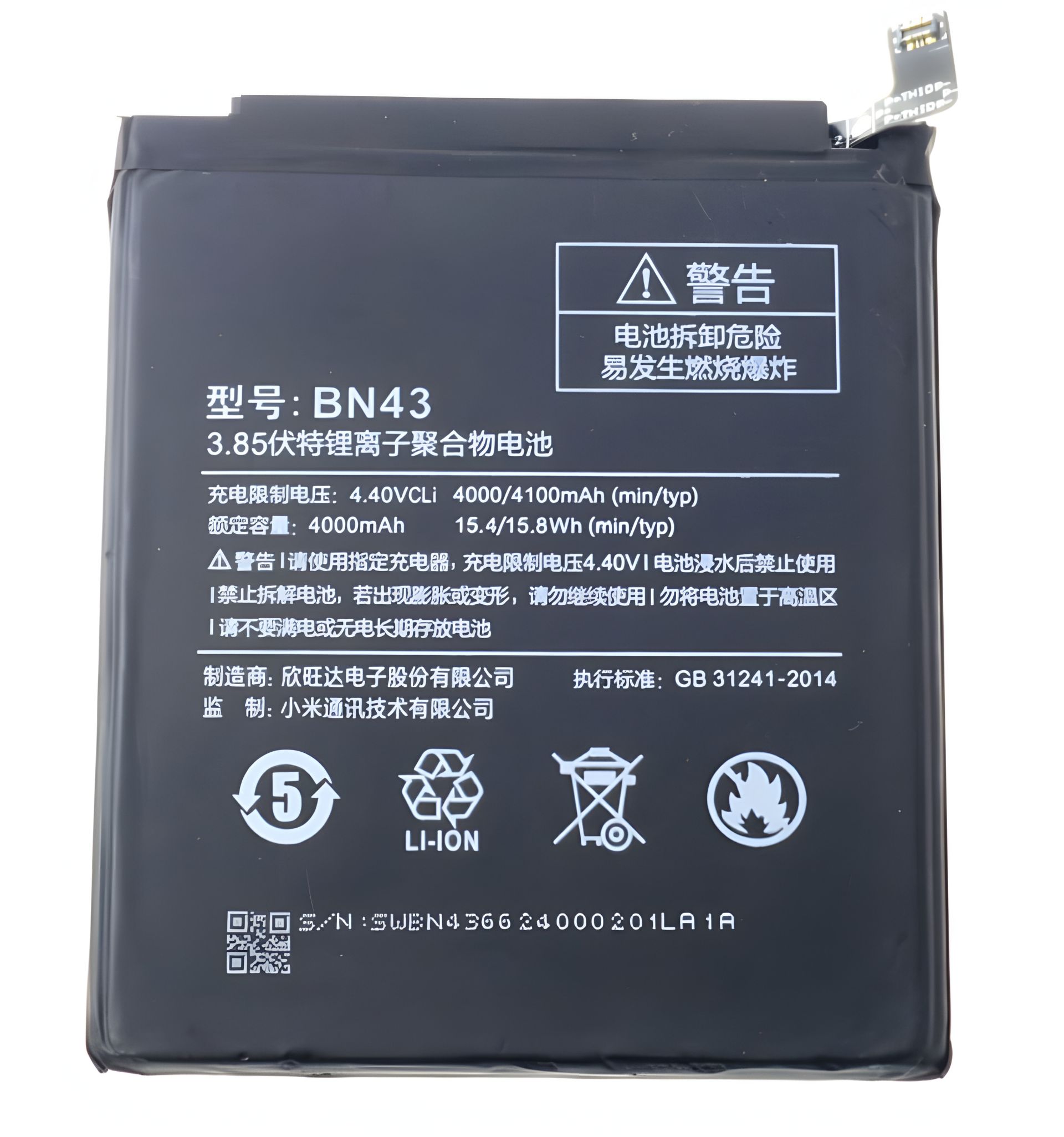 Для моделей Xiaomi:Redmi Note 4x Маркировка АКБ:BN43