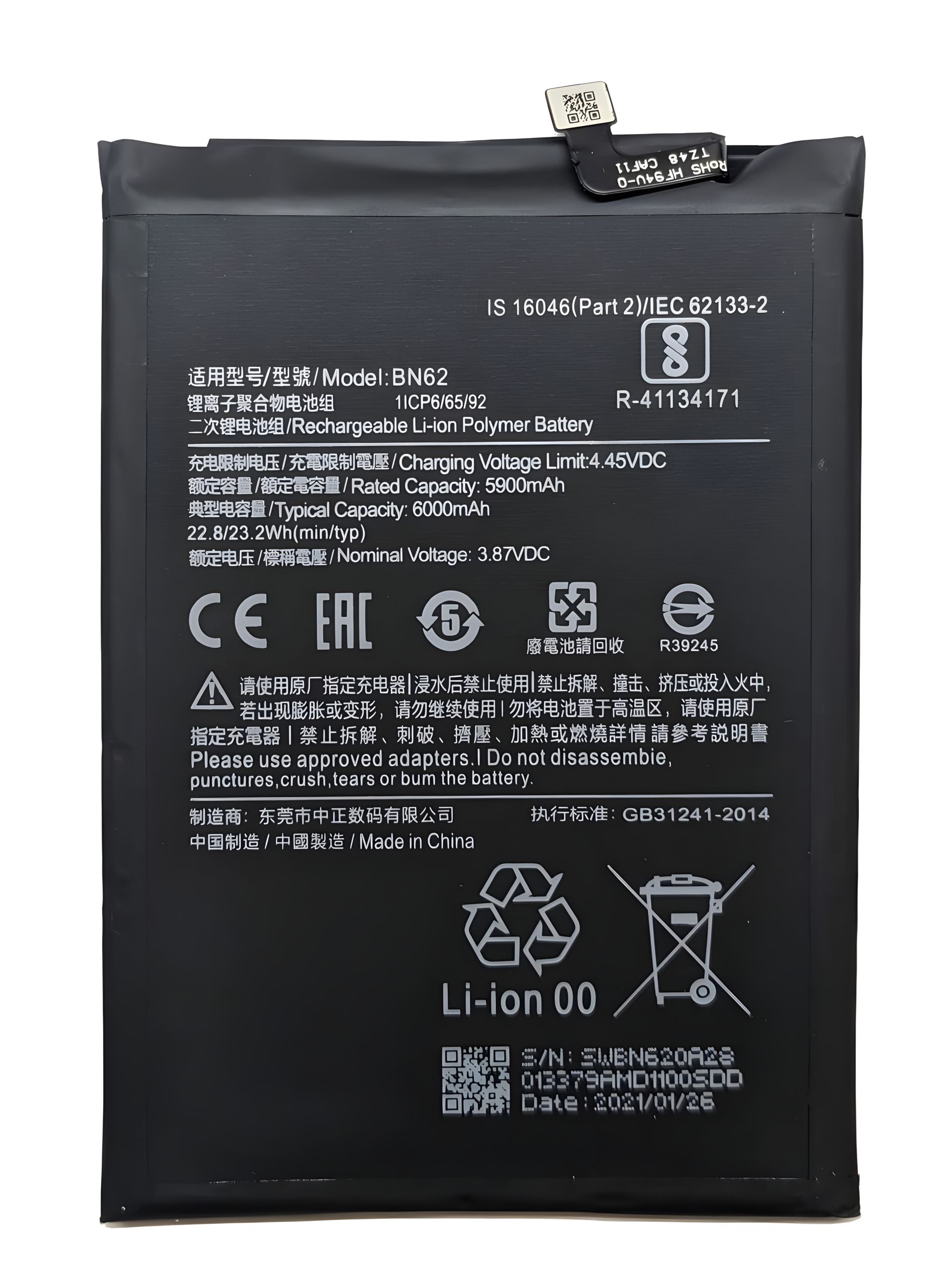 Новая АКБ (аккумуляторная батарея) вдохнет новую жизнь в Ваше устройство и позволит пользоваться им еще долгое время, вопреки стремлению производителя заставить Вас покупать новые гаджеты снова и снова. Заказать Аккумулятор Xiaomi BN62 Poco M3 / Redmi 9T [Original] можно в магазине mobenergy.com.ua с доставкой по Украине и гарантией.