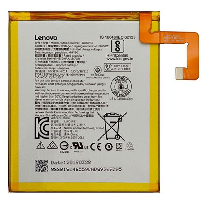 Для моделей Lenovo:Tab M10,TB-X505F Маркировка АКБ:L18D1P32