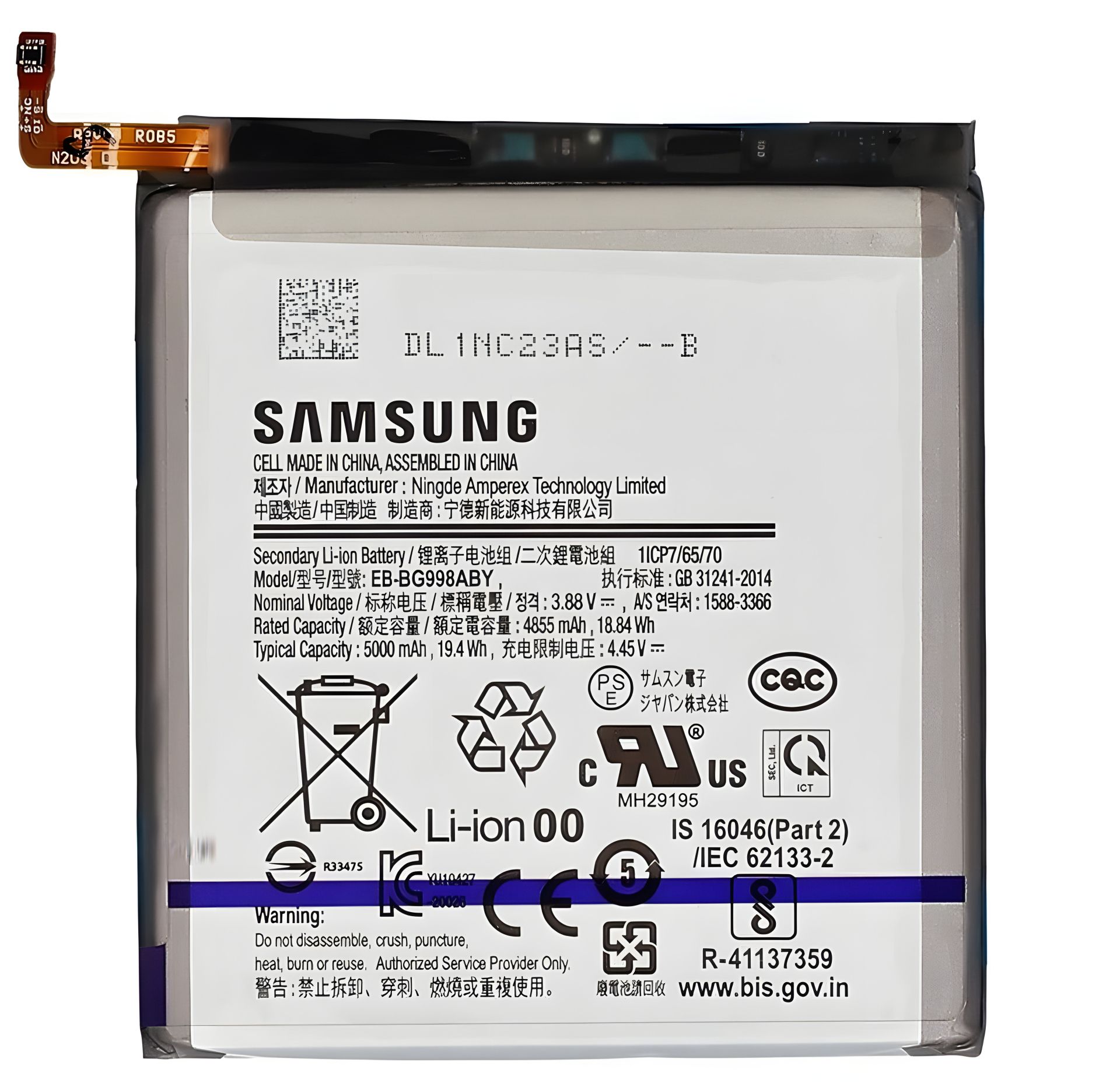 Акумулятори Samsung EB-BG998ABY Galaxy S21 Ultra 5G G998B, 5000 mAh [Original PRC] 12 міс. гарантії