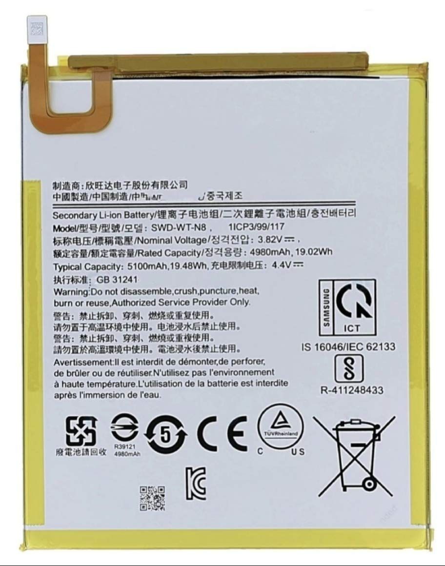 Акумулятори Samsung SWD-WT-N8 Galaxy Tab A 8.0 2019 T290 T295, 5100 mAh [Original PRC] 12 міс. гарантії