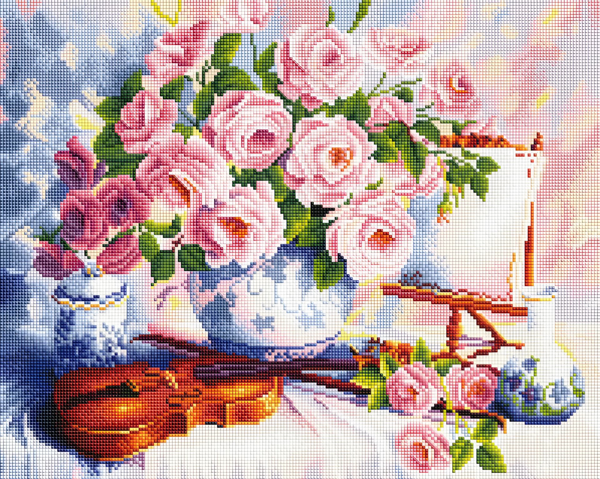 Набір алмазної мозаїки ColorArt Троянди і скрипка 40x50 см: Перетворіть своє життя в шедевр кольору та тепла!