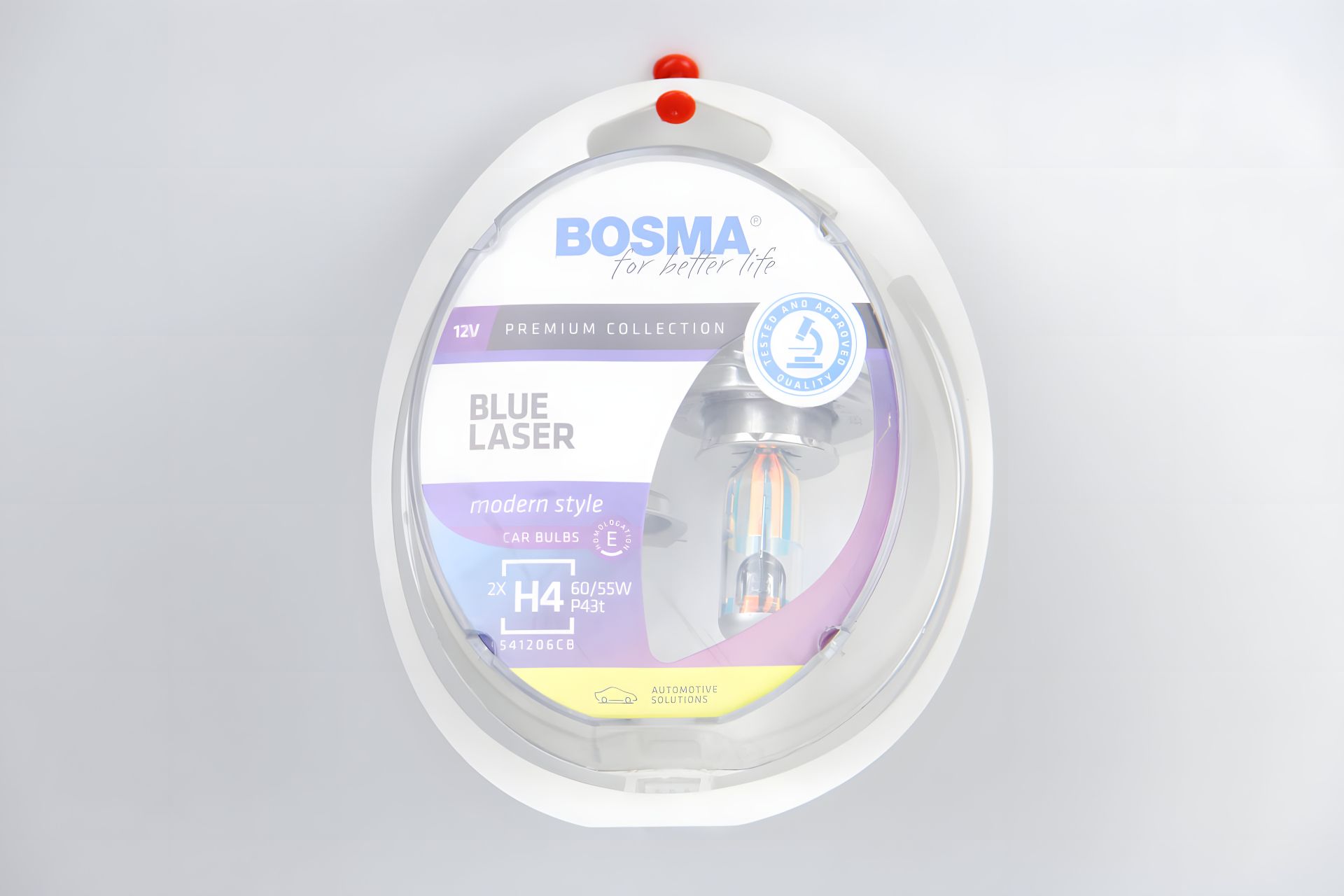 Автолампа H4 BLUE LASER 12V 60/55W P43T, BOSMA (3684) - Pack of 2