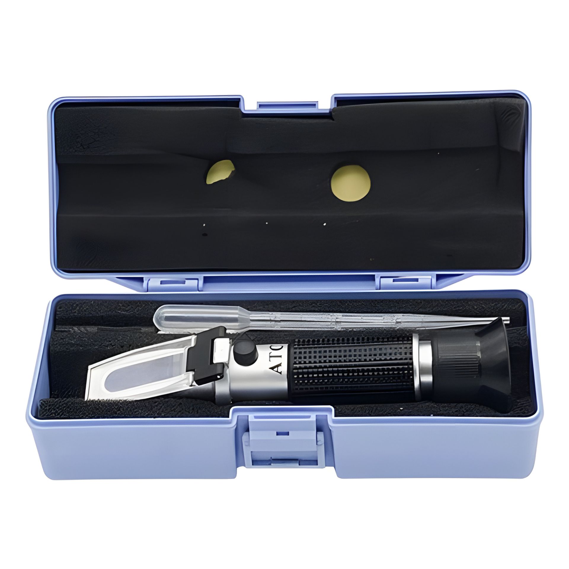 Рефрактометр - це спеціальний прилад, який використовується для вимірювання показників заломлення рідин, зокрема електроліту, антифризу (етиленгліколю та пропіленгліколю) та омивача, що використовуються в автомобільній індустрії. Цей рефрактометр дозволяє оперативно та точно виміряти концентрацію рідини та оцінити її властивості. Він забезпечує зручність використання та швидкість вимірювання, що робить його незамінним інструментом для механіків, автомобільних фахівців та інших професіоналів, які працюють з рідинами в автомобільній галузі.