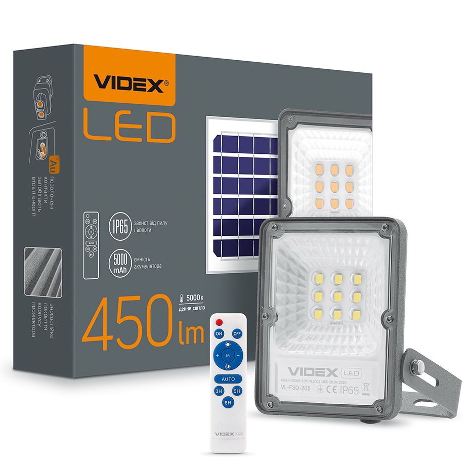 Автономний світлодіодний прожектор VIDEX 10W 5000K VL-FSO-205 на сонячній батареї та регулюванням на пульті