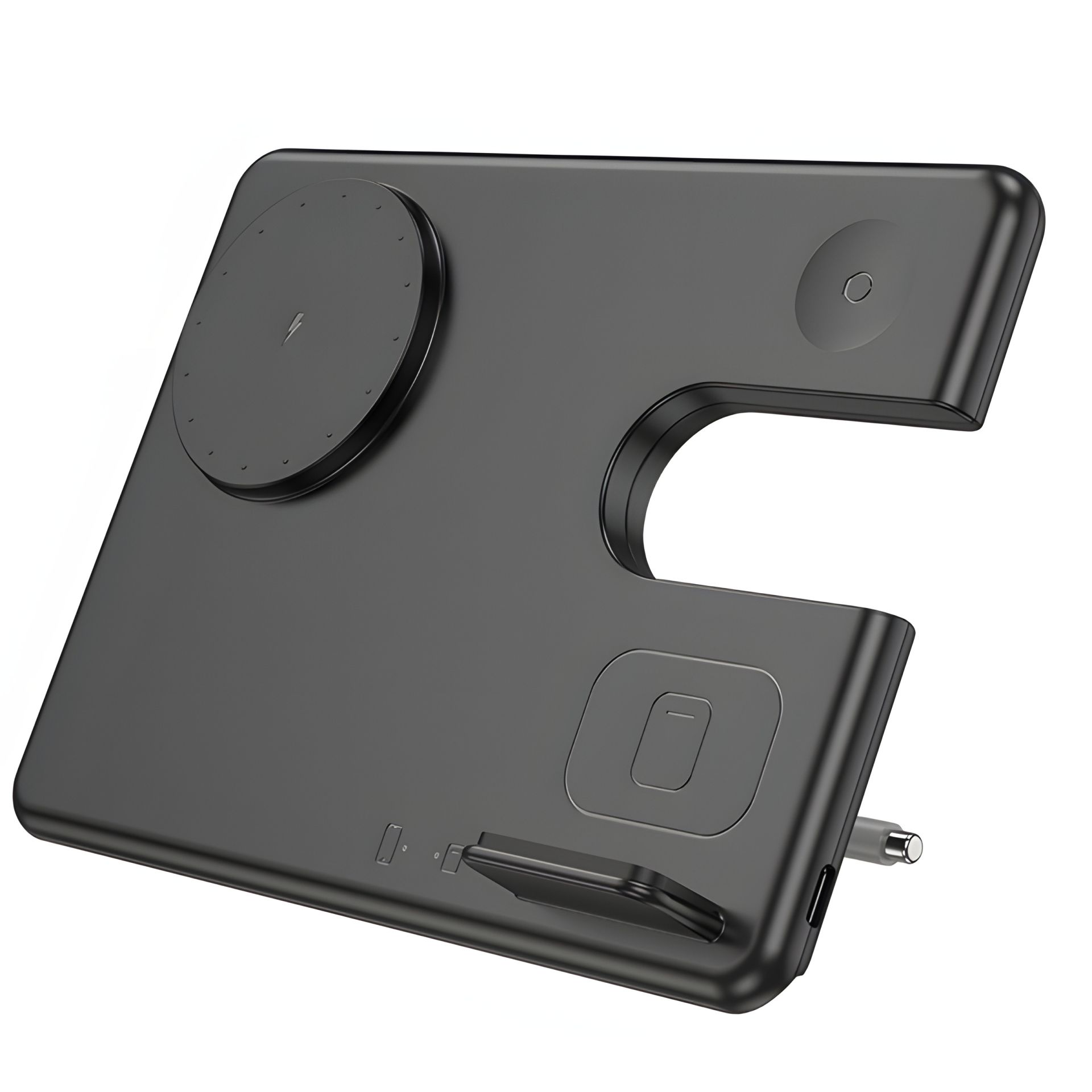 Унікальна бездротова зарядна станція Hoco CQ1 пропонує неперевершену зручність, дозволяючи одночасно заряджати до трьох пристроїв: iPhone, Apple Watch та AirPods.