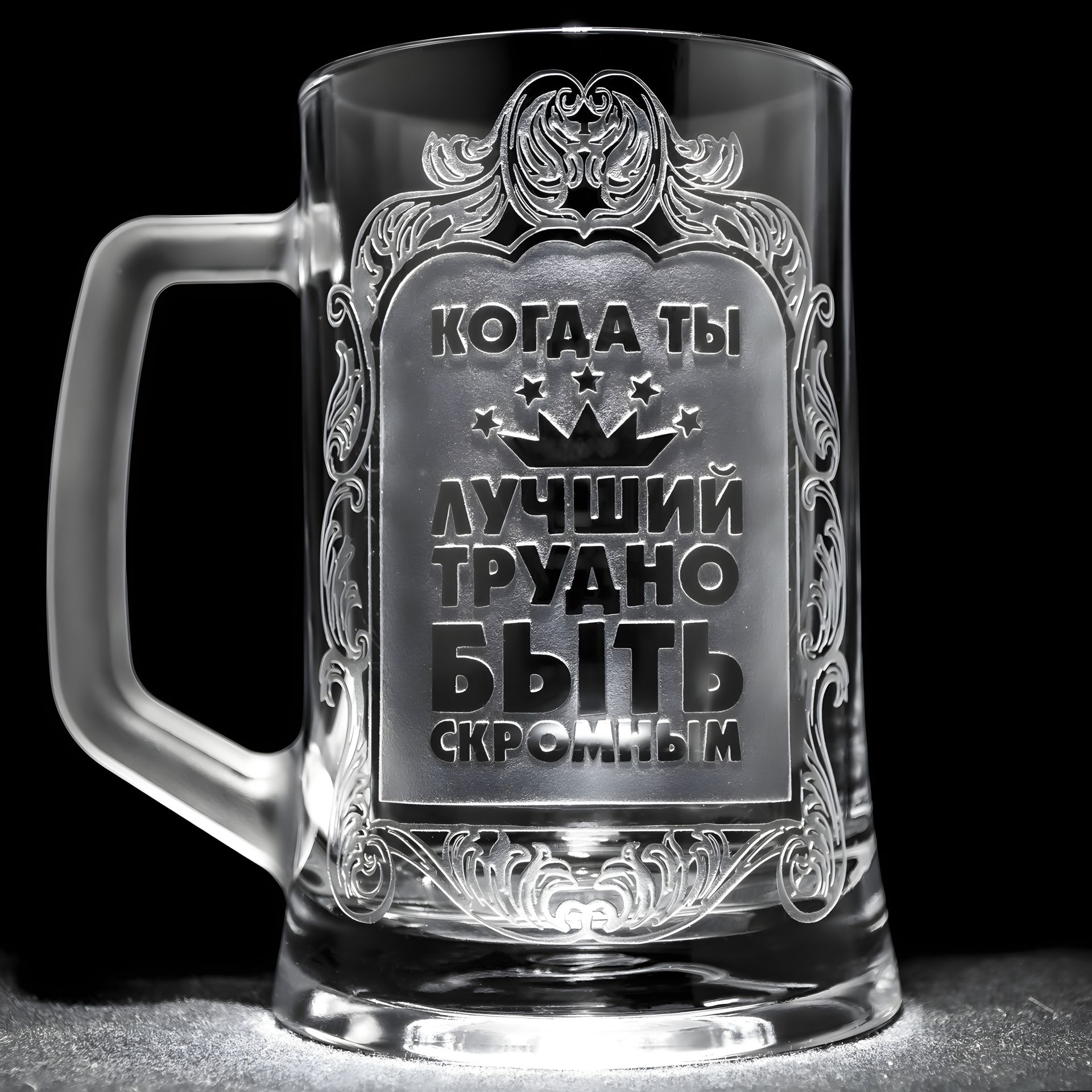 Бокал для пива з ручним механічним гравіюванням напису Когда Ты Лучший, трудно быть Скромным, прозорий з матовим вікном. у подарунковій коробці