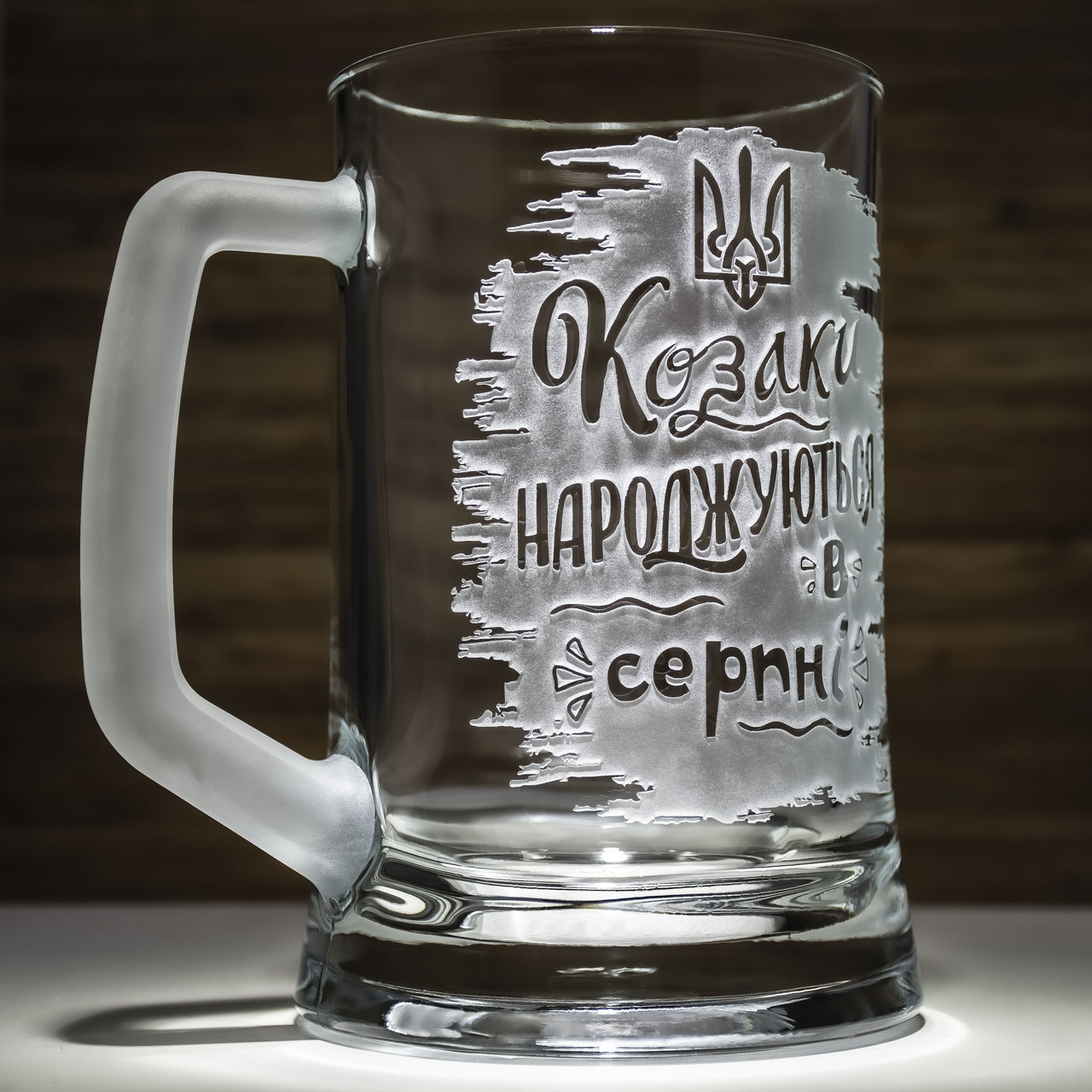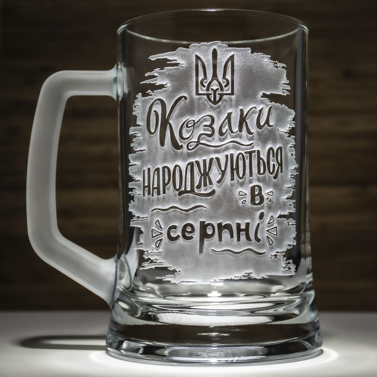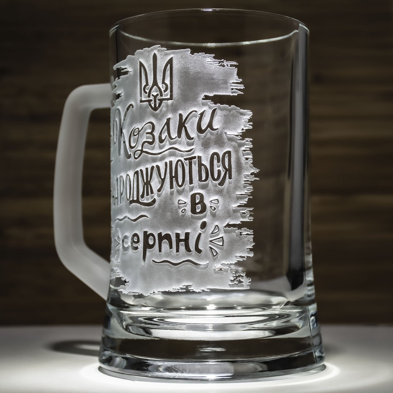 Келих для пива з гравіюванням напису "Козаки народжуються в серпні"