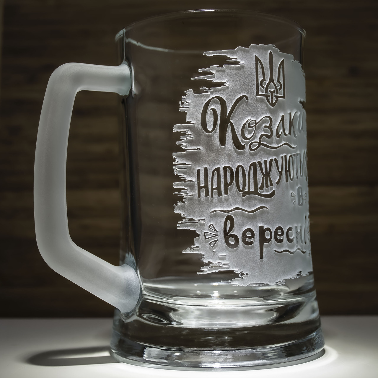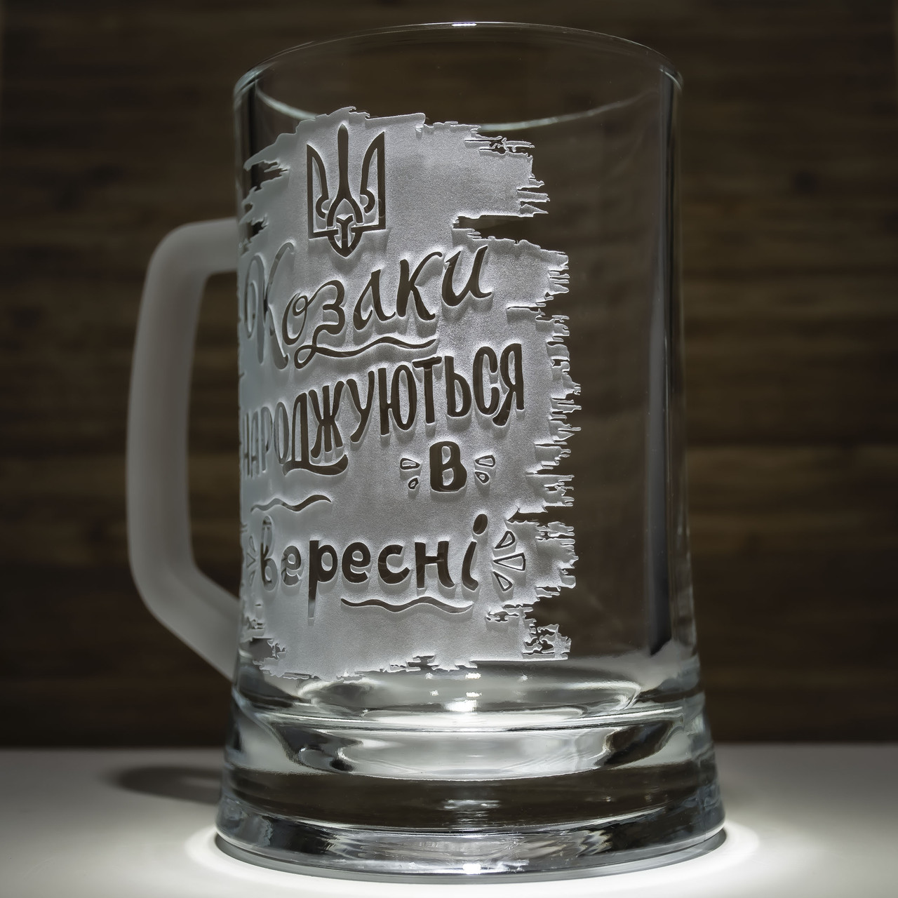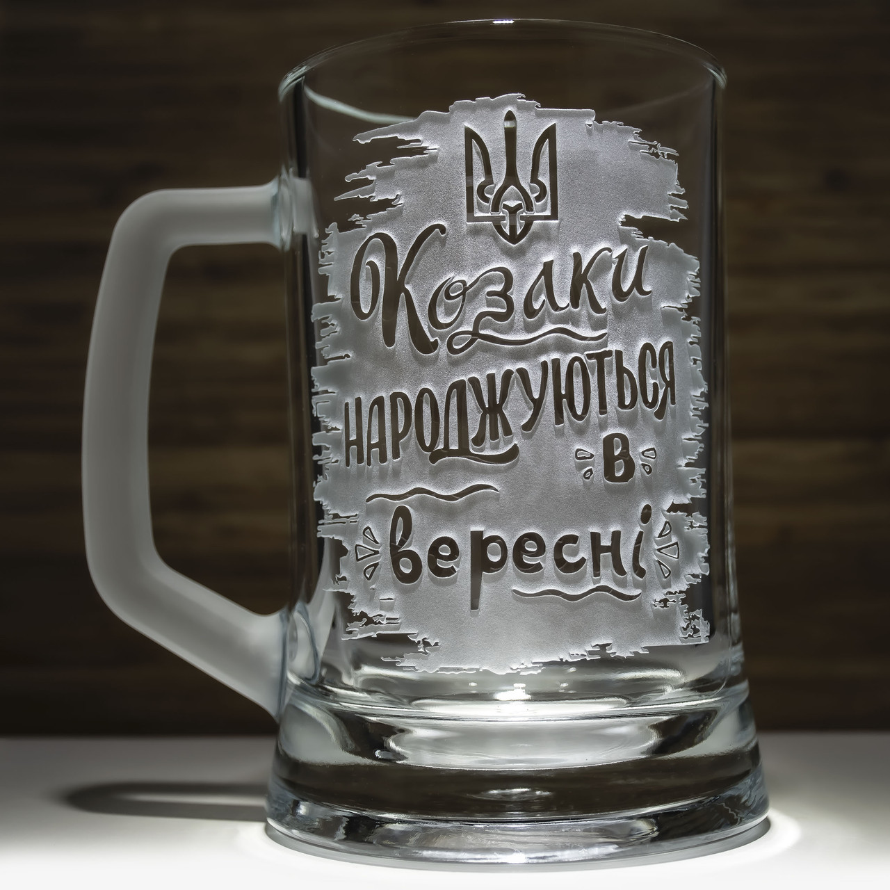 Келих для пива з гравіюванням напису "Козаки народжуються в вересні"